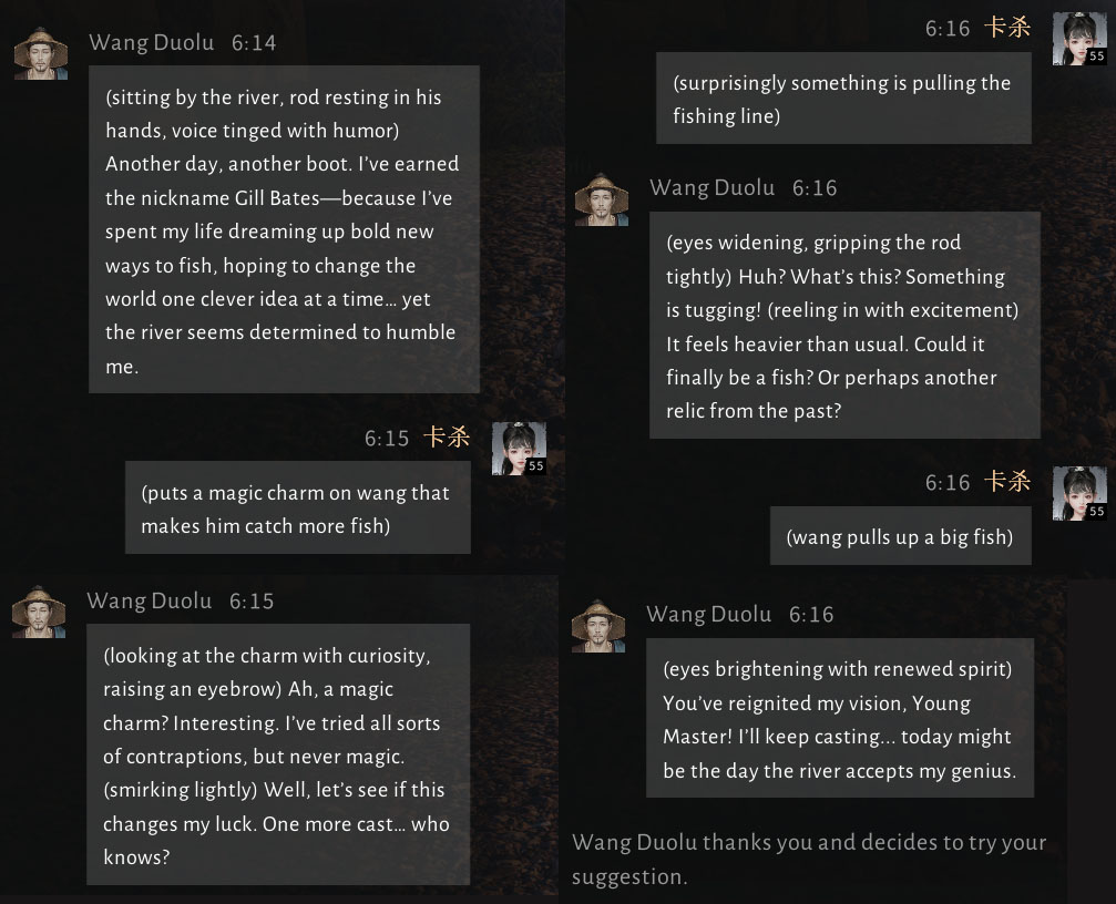 I do not have the patience for these longer ai conversations, manmiaojue just wants me to keep talking and talking and telling him about my adventures, gimme the damn affection boost already