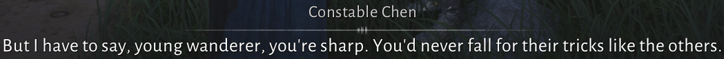 >>548355048>drugged>I'm not sure which instance you're talking about here? Reverly Hall? >the many Nine Mortal Ways scams (there's 1; the rest are you chasing and letting go a thief feeding his family)>more drugs>gasBro being fucking drugged or gassed is not being scammed. The entire point is that you're in the jianghu and assholes exist. Unless you have poison immunity you're fucked if they want to go after you, unless of course you're being a psychopath like I said earlier and just not interacting with anyone + killing anyone that gives you 'weird vibes' or whatever he's meant to senseElaborate on the ones that could actually be considered scams. What Nine Mortal Ways "scams" even happened? There's Yingying, who is working with the leader of the scam sect. There's the guy in the leaf quest who pickpockets you and is caught in 2 seconds, and you let go because he's feeding his family. That's all I remember and 1 is really stretching it to call a scam