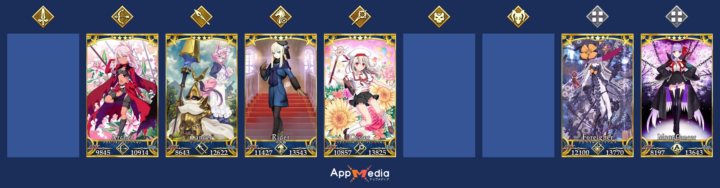 >>548335625Saber. BeniArcher: ChloeLancer: Melu, summer Miyu, LolidusaRider: Da VinciAssassin: Jack, Kama,ShutenBerserker. ChachaCaster; IllyaExtra: tons, except for maybe pretender class I thinkjust from memory
