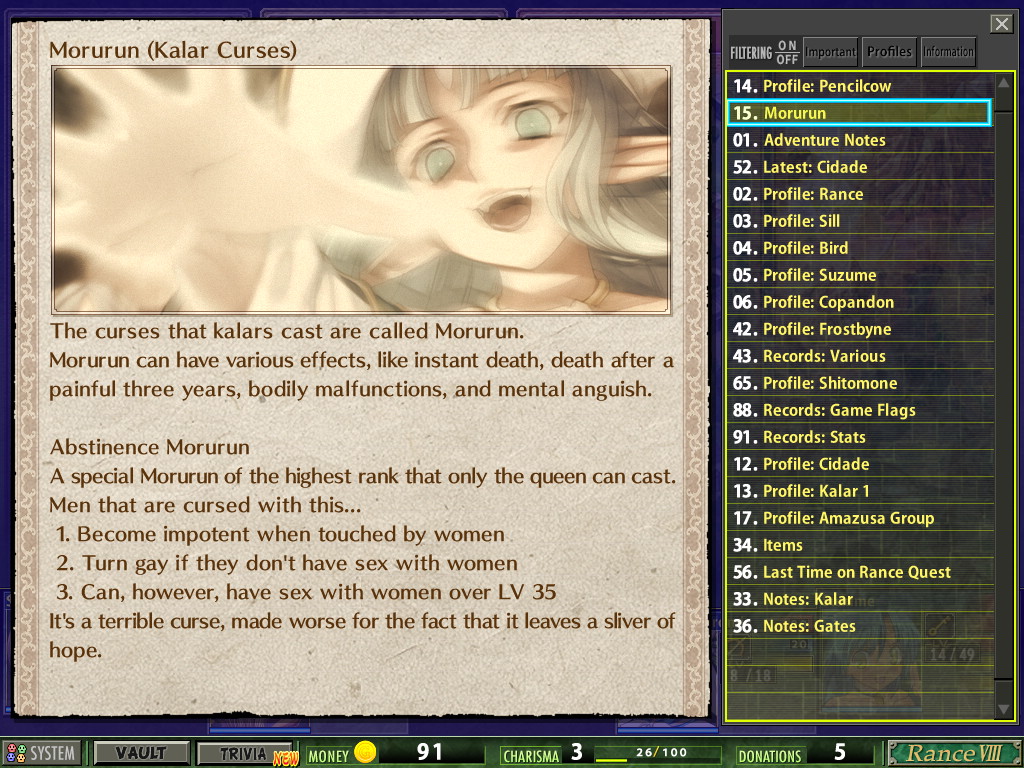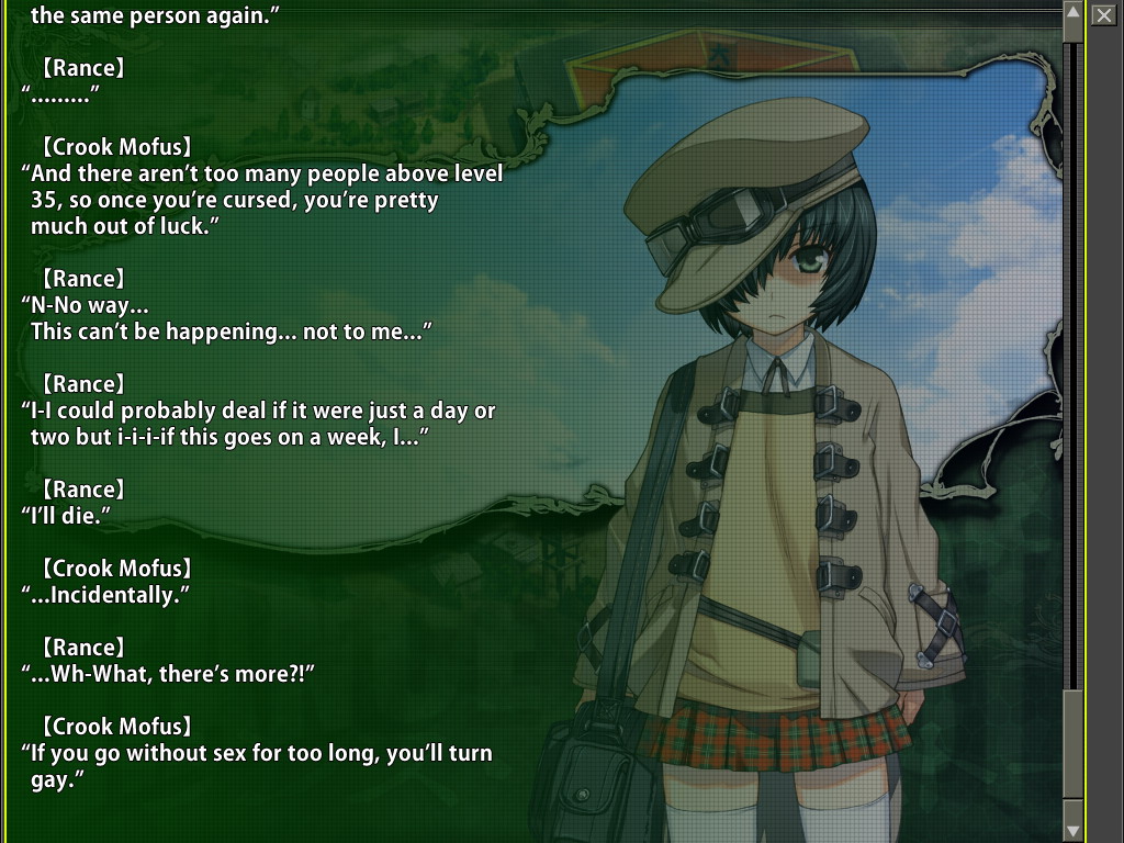 Maybe I'm reminded of how early Mind Crushes?>>548449978It seems silly, but I like that this is a personal threat to Rance. It's not like the other games, where the bad guys are attacking the country he happens to be in.