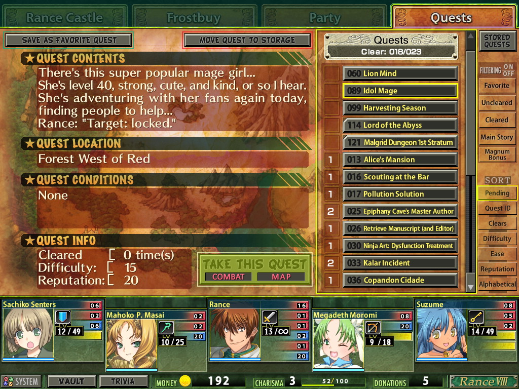 The Morurun is the best thing to happen to the Rance series. The H-scenes are much longer, varied, and hotter.I'm convinced this game is leagues better than Rance VI. How far as I through Quest anyway?