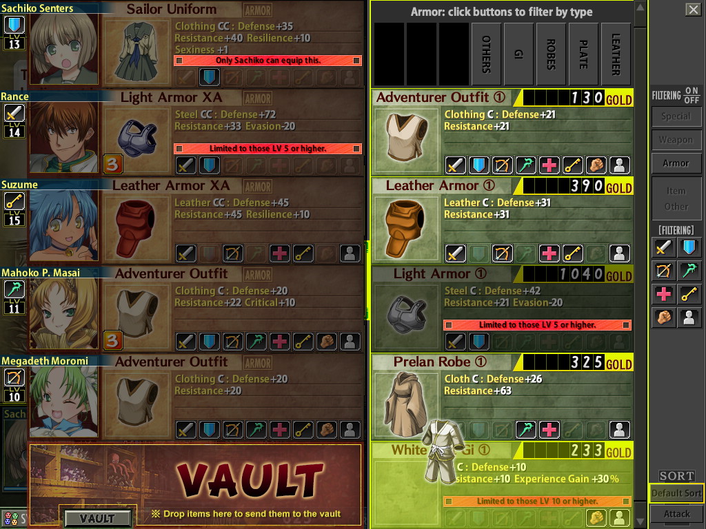 I love that you don't need to buy something before testing who can equip it.I think I'm finished for tonight. Might be more than a week before I can play again.Goodnight, /haniho/