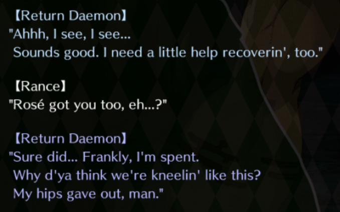 Some of the Mangagamer translation choices bug me, but I do think fiend is a better translation for majin than Dark Lord. Dark Lord just sounds like yet another translation for maou.I think it should be Demon King and fiends.