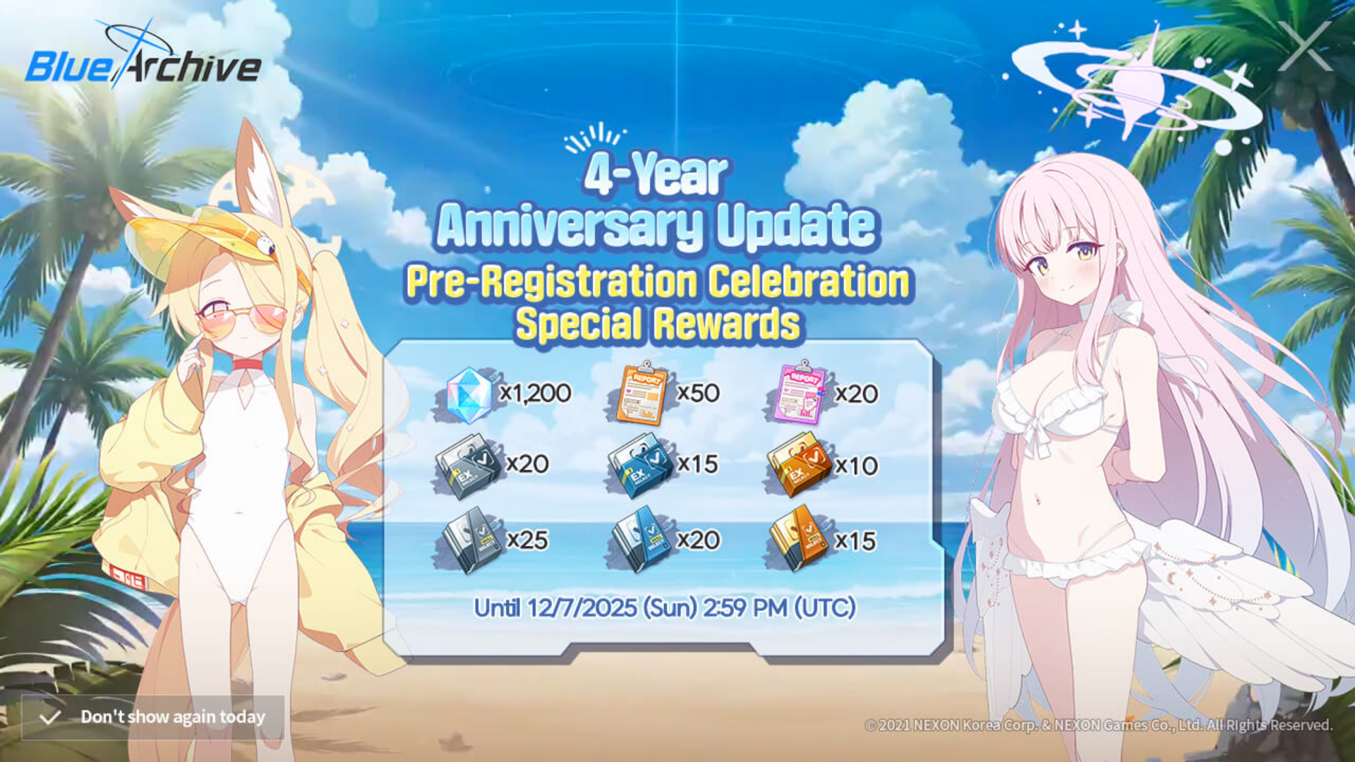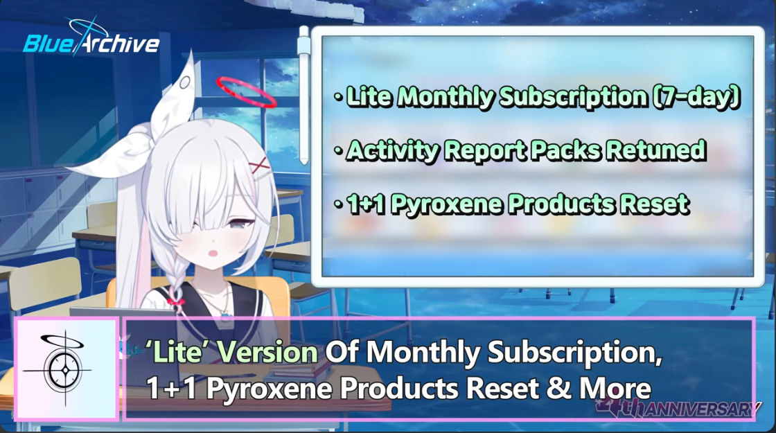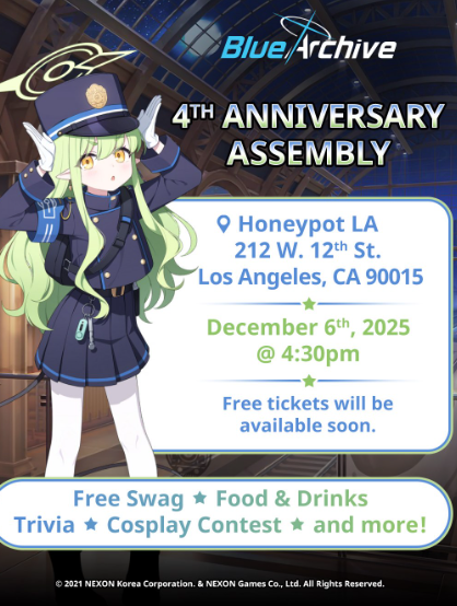 Previous Thread: >>548371942>Guides, Resources and useful links:https://rentry.org/bagguides>/bag/Circles/Clubs/Friends:https://rentry.org/holdingthebag>4koma, Manga, Side Content, PVs & Shortshttps://rentry.org/bacontent>>(JP)>Banners:>11/19 (Wed) After Maint – 12/3 (Wed) 10:59 (JST)Takane (3*)Yakumo (3*)>News:5th Anniversary Website: https://5th-anniversary.bluearchive.jpPatch notes: https://bluearchive.jp/news/newsJump/605>Events:Winter Skies Renaissance: On Wholesome Cultural Exchange – 11/19 (Tue) After Maint – 12/3 (Tue) 10:59 (JST)>Content:Total Assault: Kurokage (Urban) – 11/26 (Wed) 11:00 – 12/3 (Wed) 3:59 (JST)Limit Break Assault: Chokmah (Outdoor – w/Heavy Armor) – 11/20 (Thu) 11:00 – 12/24 (Wed) 3:59 (JST)2x Normal – 11/26 (Wed) 4:00 – 12/3 (Wed) 3:59 (JST)2x Account EXP – 11/29 (Sat) 4:00 – 12/1 (Mon) 3:59 (JST)2x Lesson – 12/3 (Wed) 4:00 – 12/10 (Wed) 3:59 (JST)2x Hard – 12/10 (Wed) 4:00 – 12/17 (Wed) 3:59 (JST)2x Commission – 12/17 (Wed) 4:00 – 12/24 (Wed) 3:59 (JST)>>(GLOBAL)>Banners:>11/18 (Tue) After Maint – 12/2 (Tue) 1:59 (UTC)Kikyou (Swimsuit) (3*), Renge (Swimsuit) (2*)Yukari (Swimsuit) (3*)>News:4th Anniversary Livestream (Day 1): https://youtube.com/live/x68u-RL8yKU – 11/29 (Sat) 3:00 (UTC)4th Anniversary Livestream (Day 2): https://youtube.com/live/fQD3WNYD4YA – 11/30 (Sun) 3:00 (UTC)Patch notes: https://forum.nexon.com/bluearchive-en/board_view?thread=3219993>Events:A Flower Blooms Among the Hundred: Fair and Square Aquatic Showdown – 11/18 (Tue) After Maint – 12/2 (Tue) 1:59 (UTC)>Content:Total Assault: Goz (Indoor) – 11/25 (Tue) 2:00 – 12/1 (Mon) 18:59 (UTC)Limit Break Assault: The Fury of Set (Field – w/Light Armor) – 11/19 (Wed) 2:00 – 12/15 (Mon) 18:59 (UTC)2x Lesson/Hard – 11/24 (Mon) 19:00 – 12/1 (Mon) 18:59 (UTC)2x Account EXP – 11/28 (Fri) 19:00 – 11/30 (Sun) 18:59 (UTC)