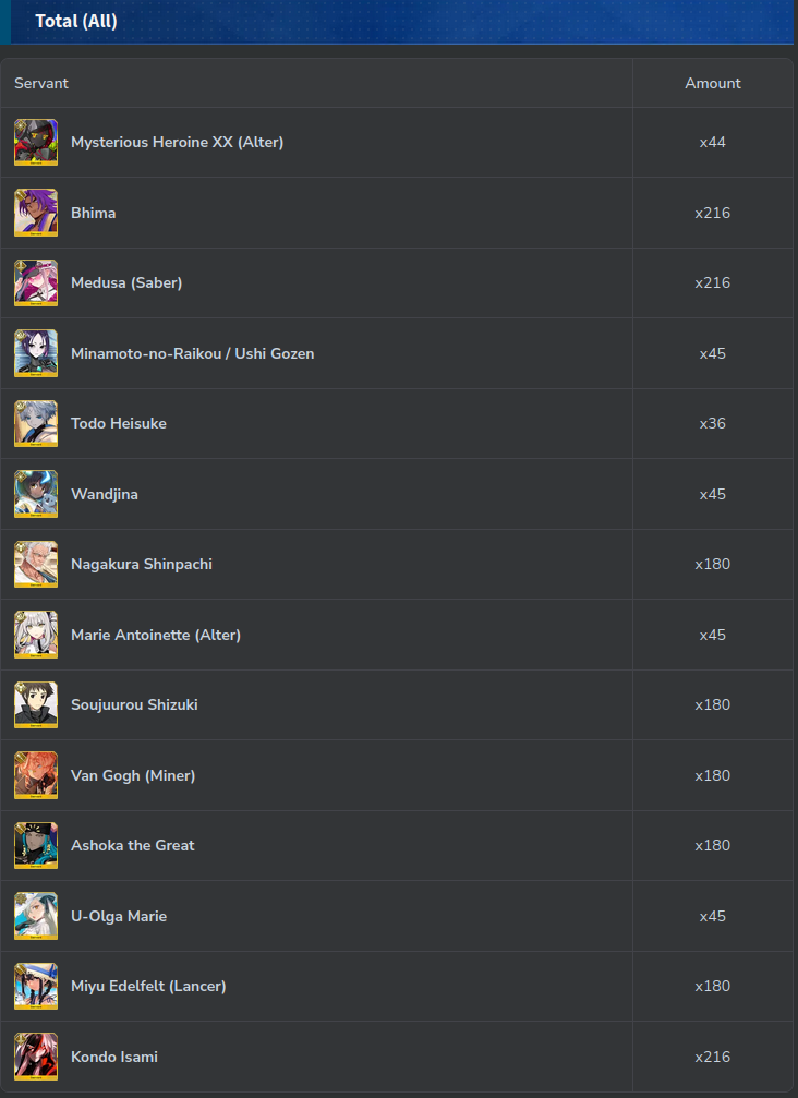 Servant Material Lookup: https://fgosim.github.io/Material/