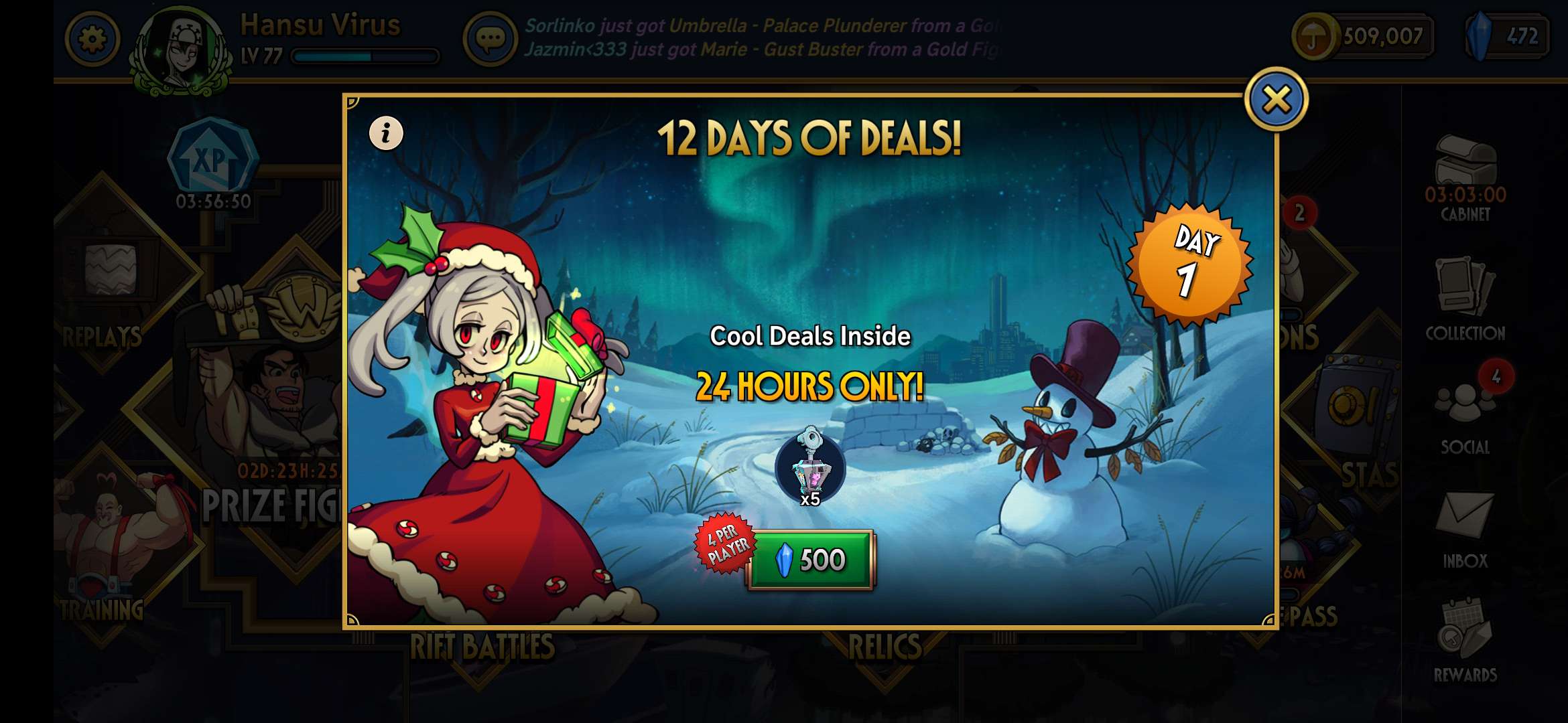 Sexy Santa Parasoul holding mistletoe in the backstage pass