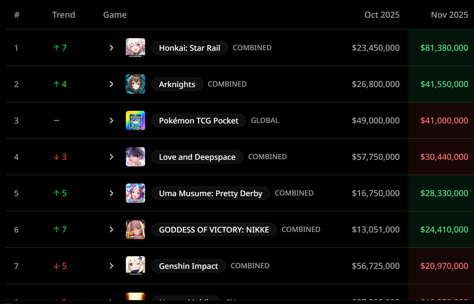 SB>GF2>Nikke>HSR