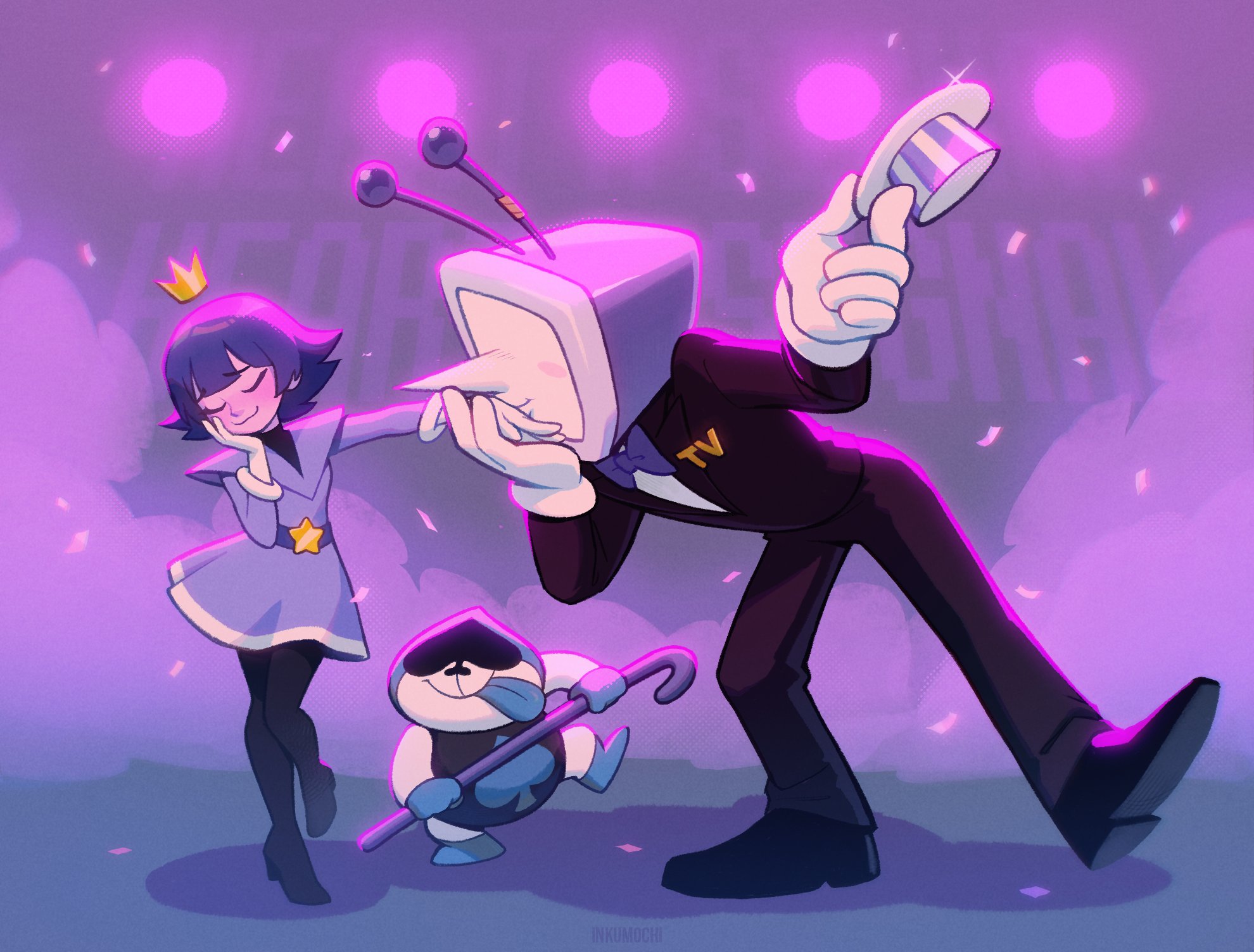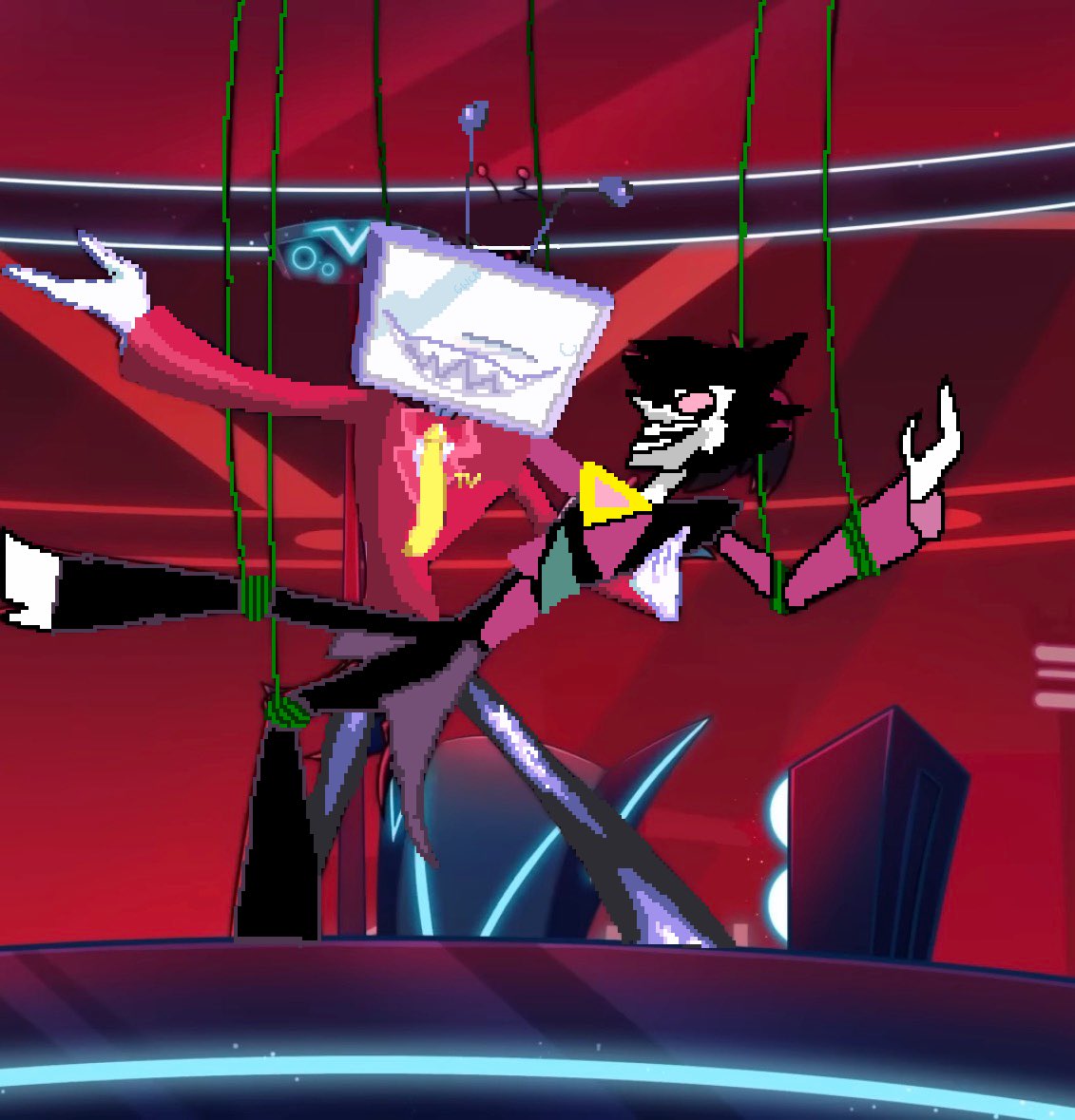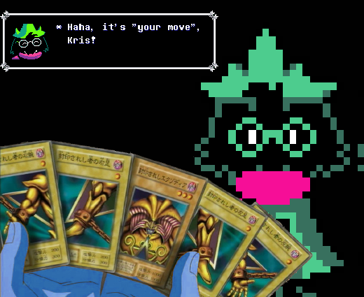 >>548562358i remember that it started with an omori-like pool environment with palmtrees.after the door at the top opened, i was greeted by a 3D fusion between roulxs kaard and jevil who forced my party to do a circus-themed Wipeout obstacle course.it ended with us fighting him and his dragon in a battle with an earthbound-like ui.