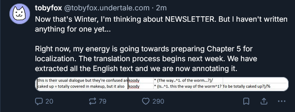 End of UTG edition Previous apocalypse: >>548522436 Spoilers ahead, proceed at your own Frisk. -DELTARUNE CHAPTER 1-4>https://store.steampowered.com/app/1671210/DELTARUNE/ -The Old Game>https://undertale.com-The Old Game's Demo>https://undertale.com/demo -The New Game>https://deltarune.com -The New Game's Progress>https://toby.fangamer.com/newsletters/>https://deltarune.com/#news>https://www.twitlonger.com/show/n_1sqn3p9 -Merch>https://www.fangamer.com/collections/undertale>https://www.fangamer.com/collections/deltarune -Books-Undertale Artbook>https://pastebin.com/1MRmU0Gk -Legends of Localization - Undertale>https://pastebin.com/DkZaXMpi -Extra Content>https://undertaleqa.tumblr.com>https://undertale.com/alarmclock>https://deltarune.com/sweepstakes/>https://toby.fangamer.com/newsletters/ -Undertale/Deltarune Text Dumps & Screenshots>https://pastebin.com/WG9u1fvH -Undertale Image Collections>https://pastebin.com/g2JqH6Ba -Booru (newly resurrected, please help tag)>https://utg.vidya.pics/ -Recommendbin>https://pastebin.com/fsqd5Sa6 -Writebins>Current: https://docs.google.com/document/d/1ZaYVvltQ_Rmf-ggszf1bwmYDW2NUcfpTYU7JzfyMhVE>Old: https://writebin.surge.sh -Comicbin>https://pastebin.com/UJpBYSEE -Fangamebin>https://archive.is/iSiFg -/vg/ League team>https://implyingrigged.info/wiki//utg/ -Current whiteboard: https://r2.whiteboardfox.com/25237835-9569-6305-Previous whiteboard: https://r9.whiteboardfox.com/95521191-6606-6316-Magma: https://magma.com/d/QiFH9rWyRh-WorldOfText: https://www.ourworldoftext.com/utg-Wanna change the font?>https://rentry.org/utg-font -Thread Template>https://pastebin.com/rTN8SxAw