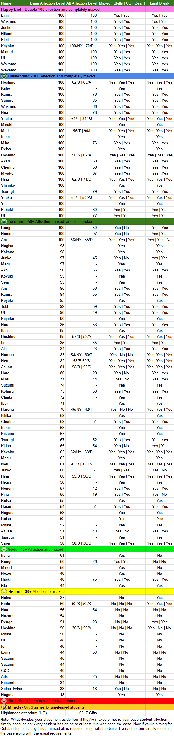 The holly jolly December affection check is currently open. Your affection check draft has been wrapped and delivered, feel free to tell me if there are any errors or I missed you https://files.catbox.moe/xnme3k.xlsx (Open the link and click save as to view) If you haven't already come show just how much you love your studentwife! Remember I want her base. Including her alt is optional and a nice flex but her base is what I'm looking for.>Can I post her if she isn't maxed?Of course, your work in progress is always a joy to see. Remember the climb to the peak isn't a race.