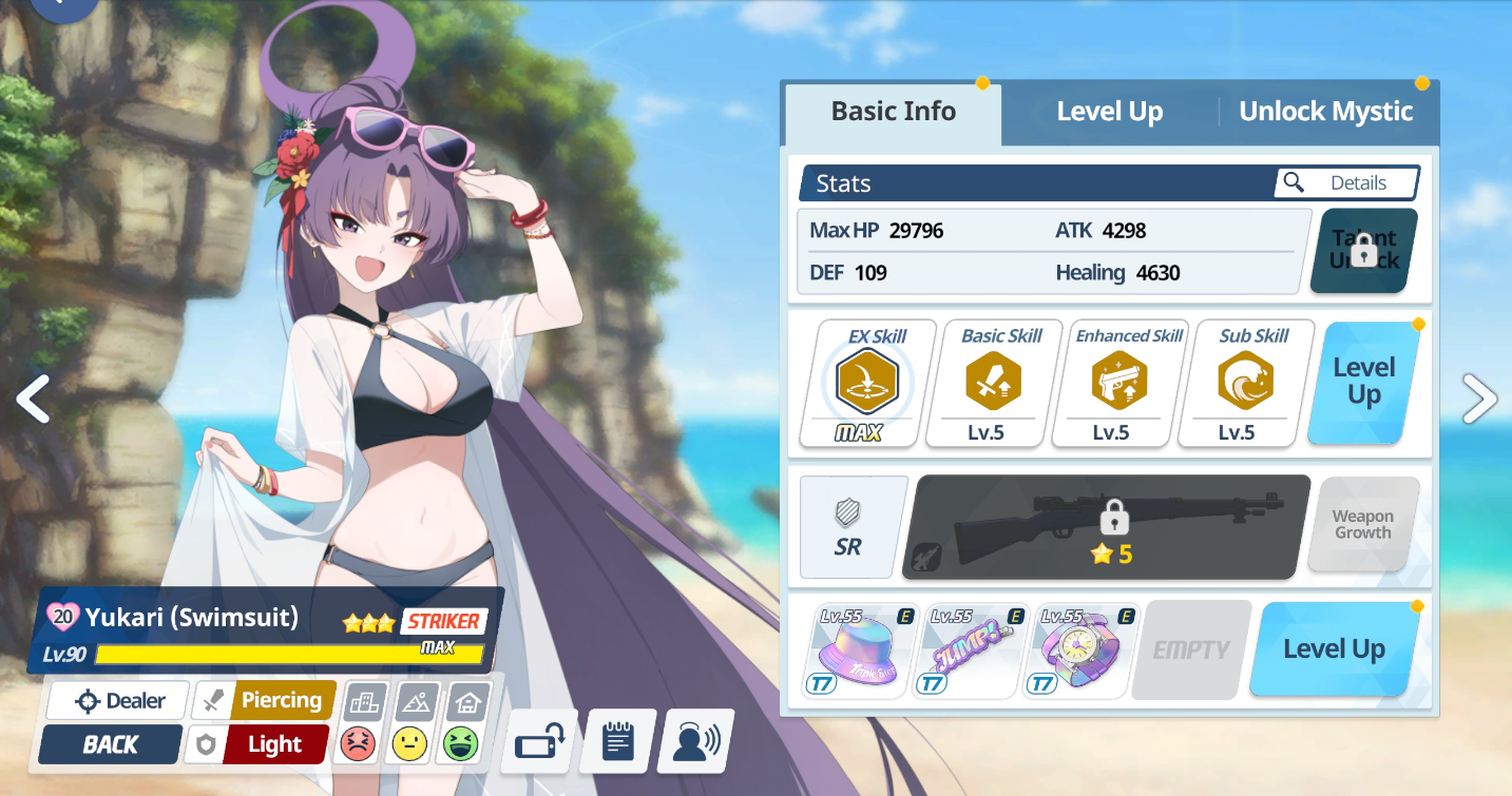 Yukari needs bond gear so bad. I'm not expecting her to be better than Hanako but she's by far the worst purple AOE.