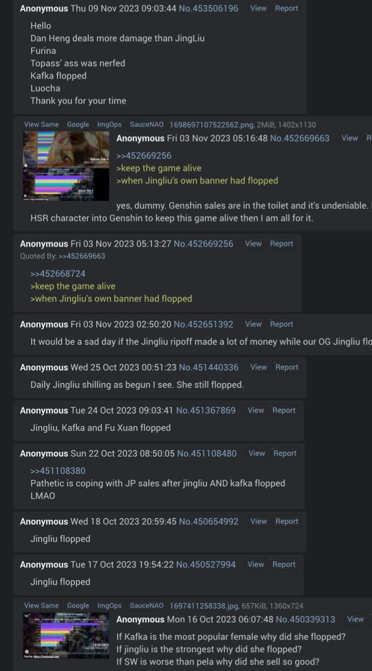 >>548615695Those were all raiders, kurobots, tencent shills, ZZZ players and whatever else. Real HSR players never cared about sales or Genshin.