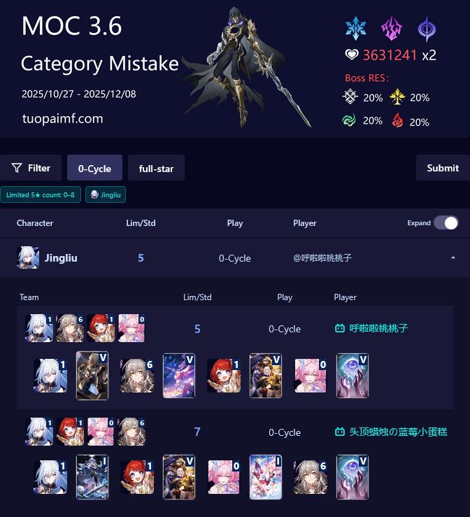 >>548623063A full MoC 0-cycle means you use up to a maximum of 150 AV out of the allotted 1050 to 3*. That's roughly 14%, and for Shiyu/Abyss which has 300s to 3*, that amounts to 42s total time for both sides, so one half needs to do 21s for the equivalent. It's simply a lot more expensive compared to HSR.