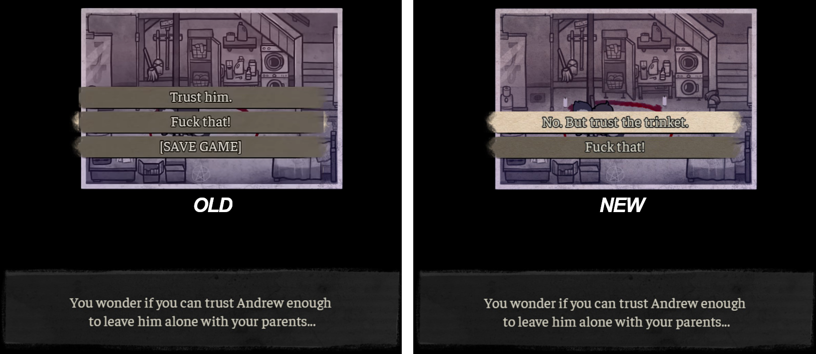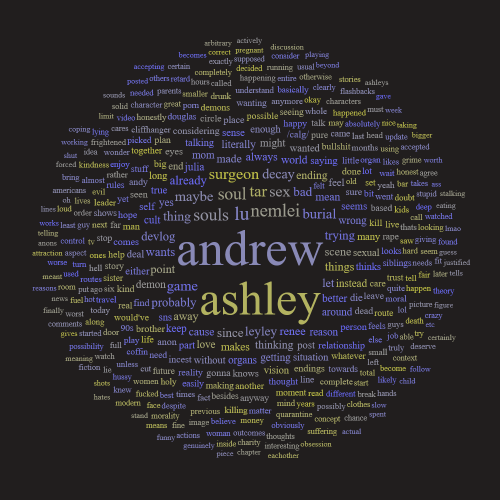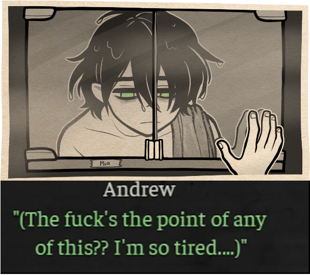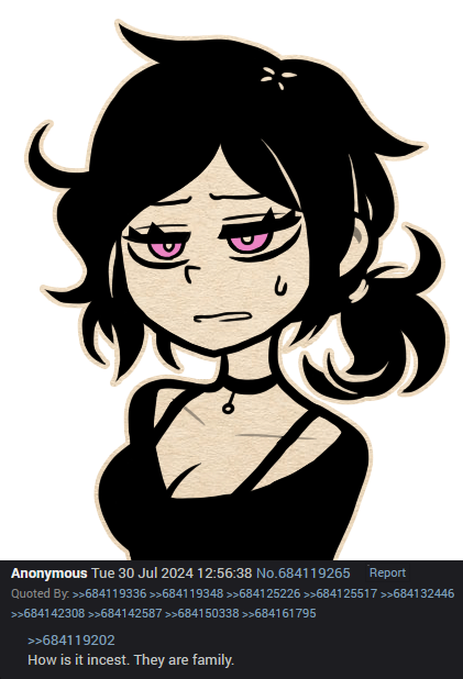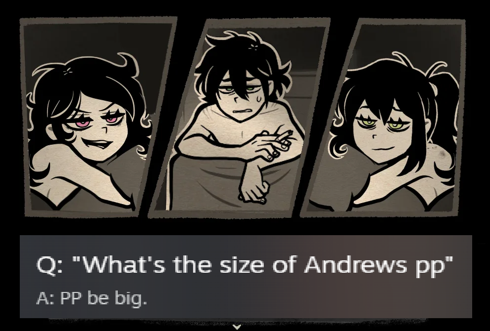 >>548689471>possessive Yeah, but a lot of people assumed he was just being a protective big bro still treating Ashley like a kid. Before Coffin was known as 'the incest game' people didn't automatically look at all their interactions through a relationship lens, especially since Ashley clarified in room 302 that she's only sabotaging Andrew's love life back then Nemlei made it seem like he was sleeping around a lot because she needs him in her life as a father figure. There was nothing incestuous about their relationship before episode 2.