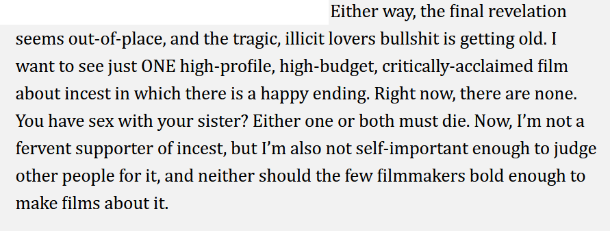 >>548642332<Lovers of the Arctic Circle>. It's a neat movie but it's NBR so not a real incest movie Im afraid