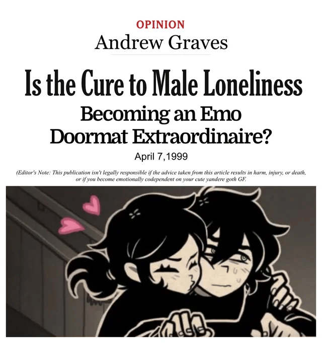 >>548753958Sorry, anon, I was actually being incredibly sarcastic and lampooning the modern state of the gender war women are waging against the hapless boyim.