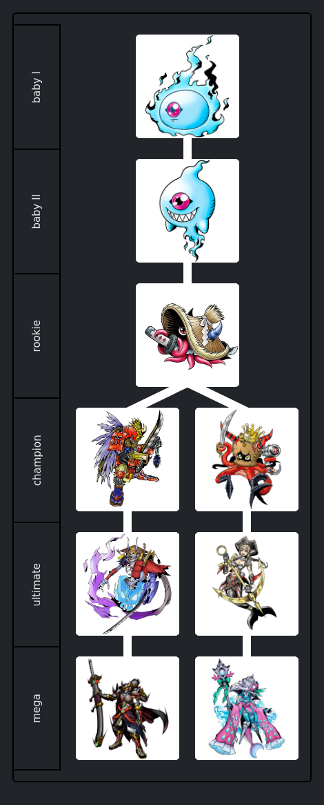 I'm trying to pick Lv 5 and 6s to assign as Digimental of Fate evolutions for the 02 partner digimon. I'm likely way off because there's little info and I'm admittedly not that knowledgeable. The logic I'm going for is that it works to unlock a digimon's potential as a glimpse of what it could one day becomeSo far I have >Veemon to Hisyaryumon or Aero V-dramon>Armadimon to Cannondramon or Groundramon>Hawkmon to Vulturemon or Hippogriffomon or Garudamon or Toropiamon>Wormmon to Jewelbeemon or GrankuwagamonI'm unsure about borrowing a couple I saw on >r*ddit, which were Tailmon to Lovely Angemon and Patamon to Dominimon.