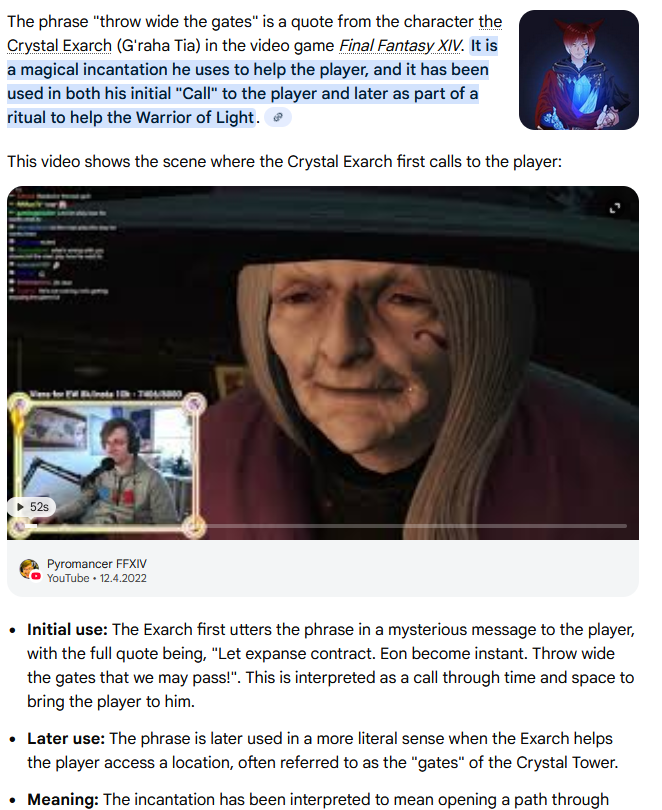 Didn't they say something similar in XIV as well?Throw wide the gates or something