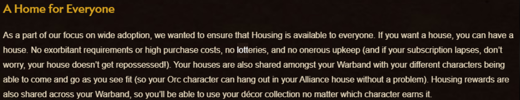 Welp, it's official, Player Housing is a New Pillar of WoW!