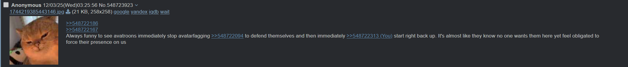 >>548706478>Literally so terrified of joining so he pretends to be a contrarian instead