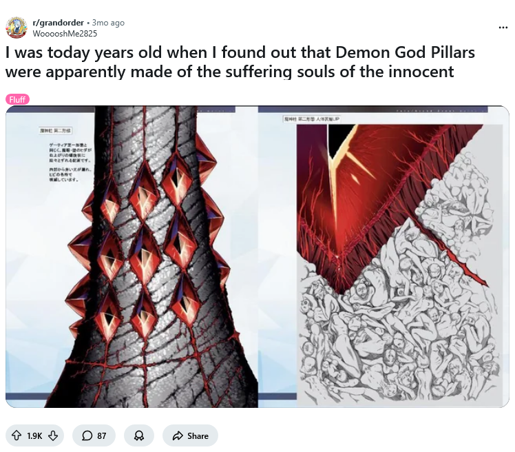 >>548750758It's not a cope.Raum, Flauros and the control center are all part of "Goetia." Goetia spoke with "we" a lot because it was a hive.But the Goetia yall want playable is the Human king, which is only formed after cutting off all demon gods. It's confusing because Goetia is two things. Raum, unlike Flauros, never developed individuality and feelings until the hive broke, so he can now distance himself from this and not agree with that view. He became much worse than he was before as a mechanical demon. However, you can't tell me the demon god who named his greatest creation "SHEBA" didn't put her up on a pedestal. That's blatantly bullshit.