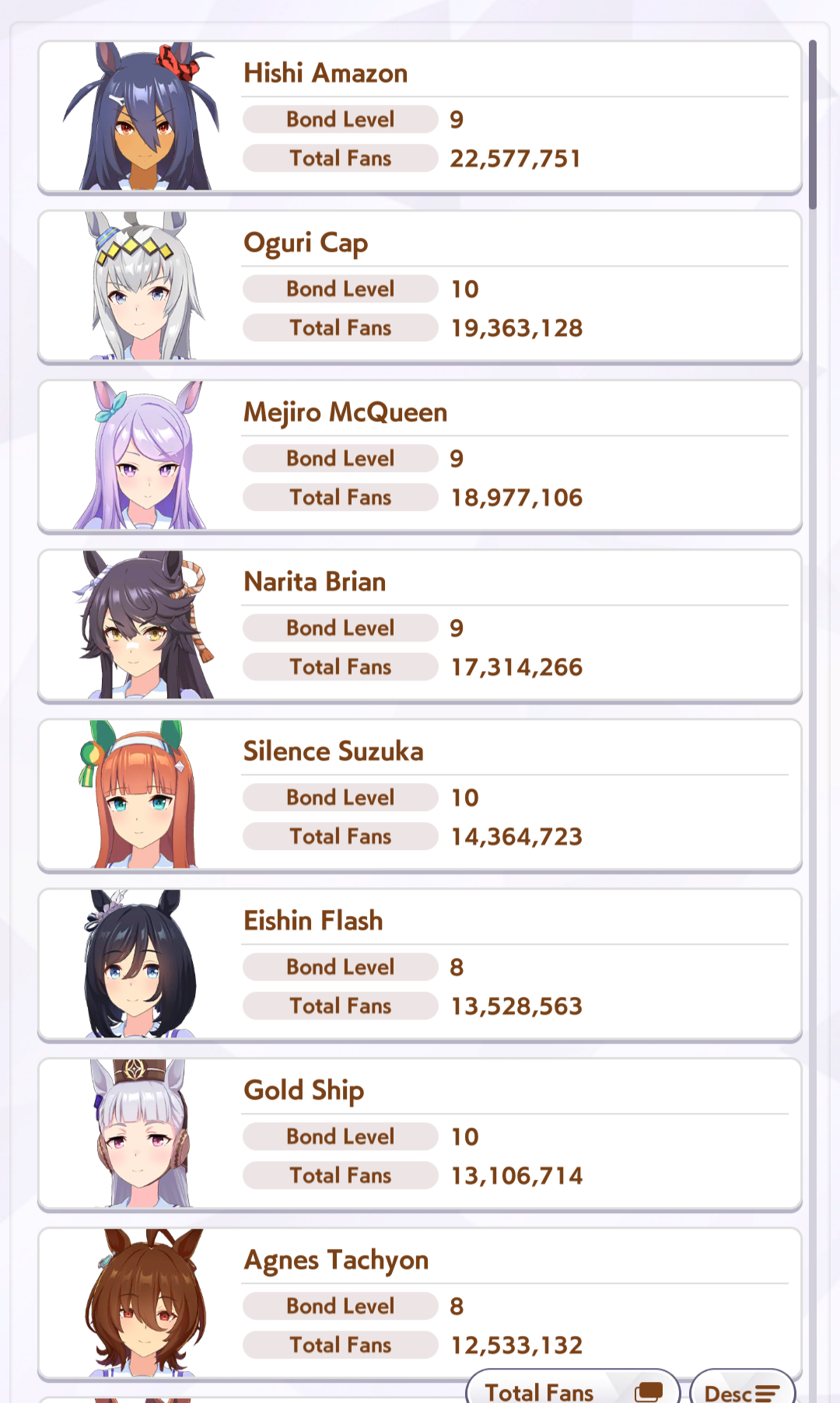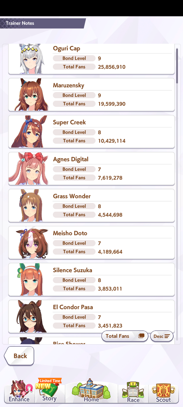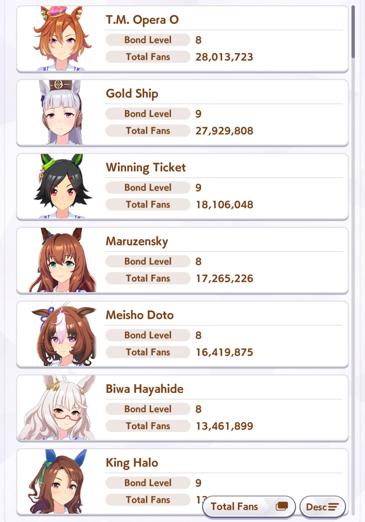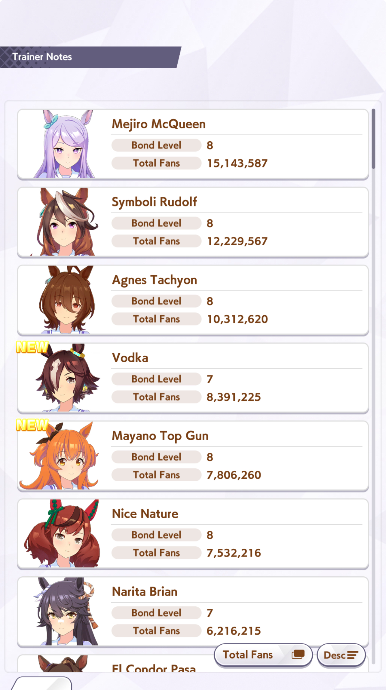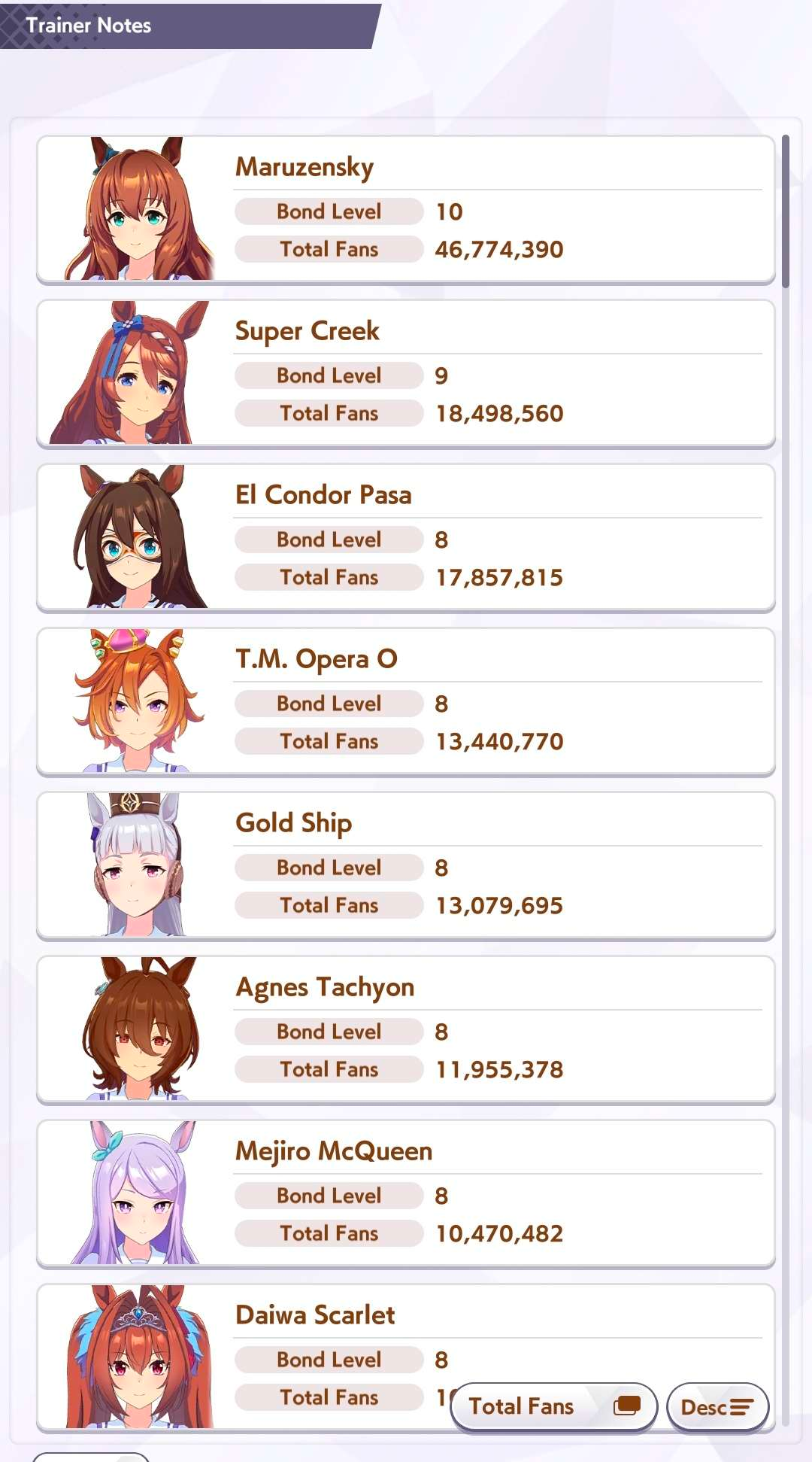 >>548797684it's kind of disheartening to see people with one uma significantly higher than all of mine combined.Daiwa is only that high for parents, and gold ship is mostly from her event a while back