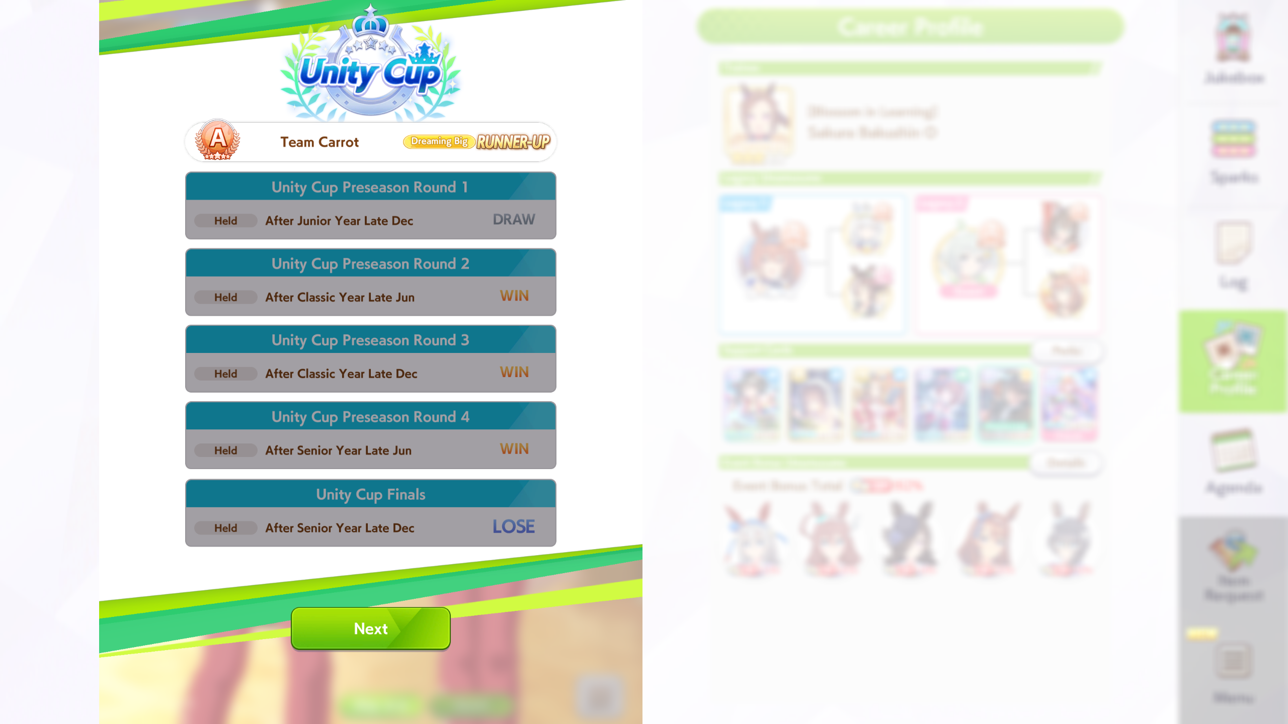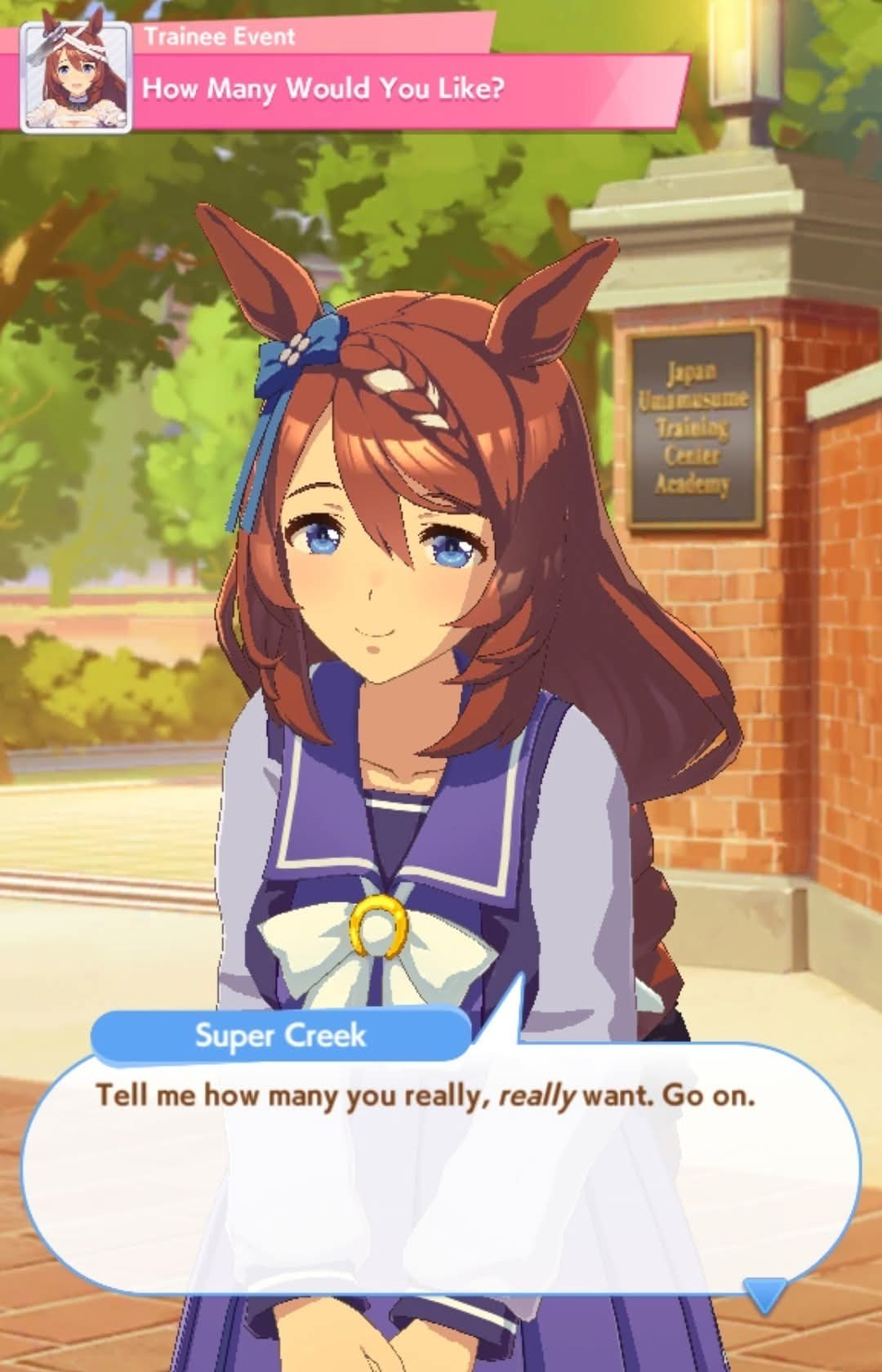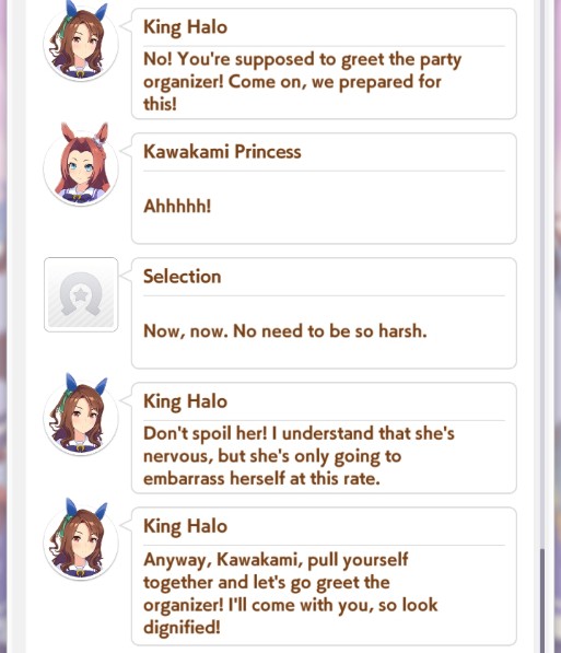>>548773198I view each scenario as a chronological timeline. URA was when you were a fresh new trainer, and Unity is you having a decent enough reputation for being carefree that Riko learns to respect.