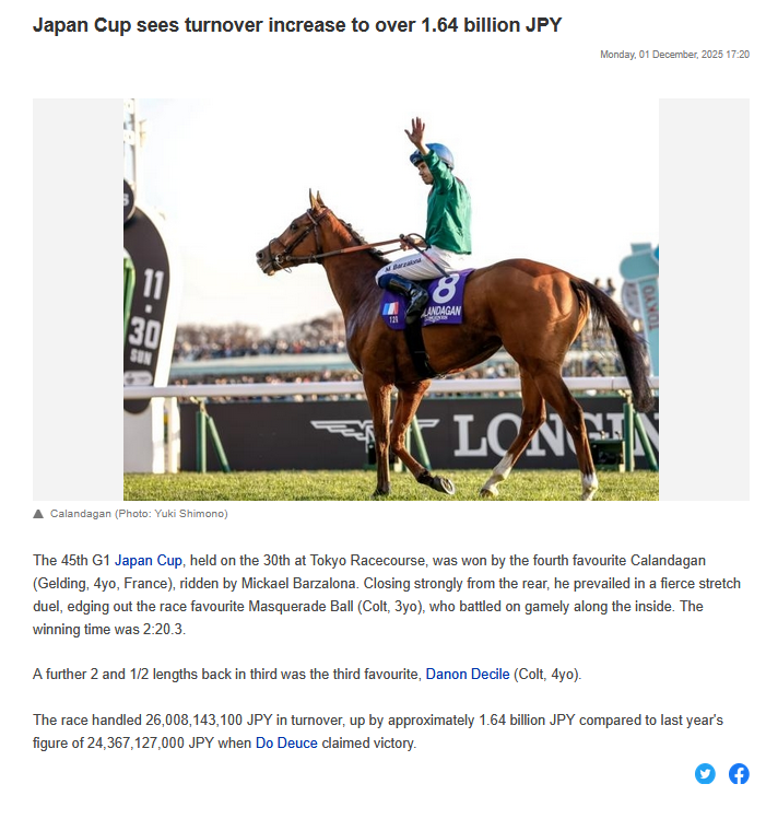 update on Masba. No major injuries thankfully, but there is mild swelling in his left hind leg due and just overall signs of fatigue from running hard, will probably skip Arimahttps://x.com/yblue_eternal/status/1996129111803396466?s=20