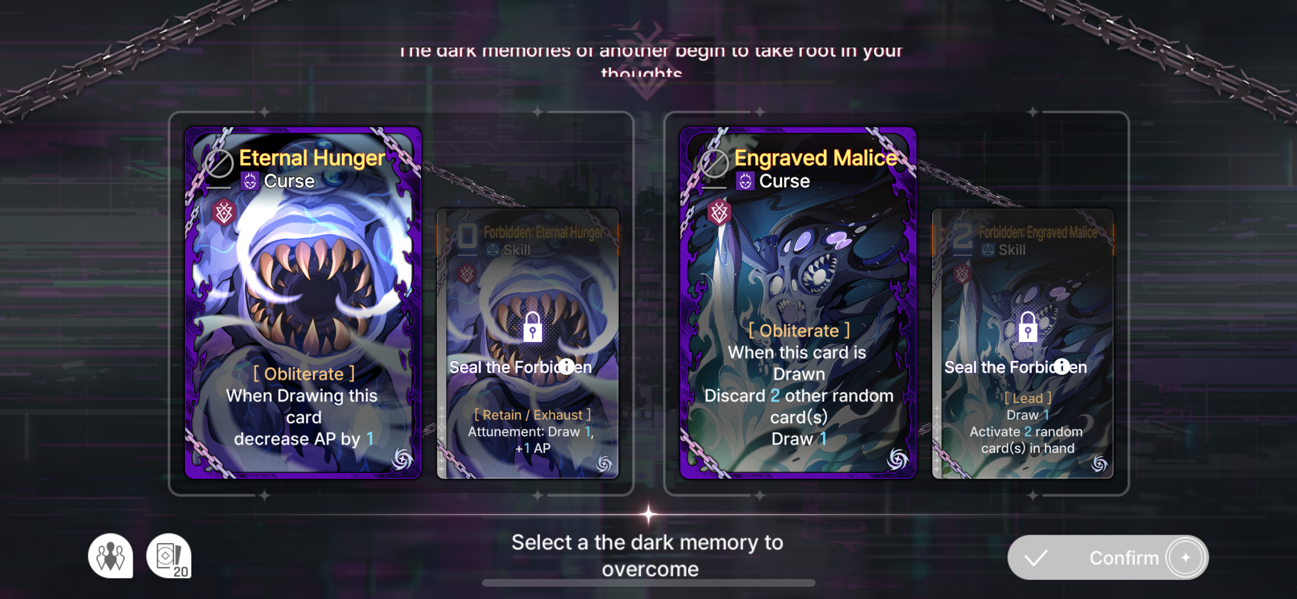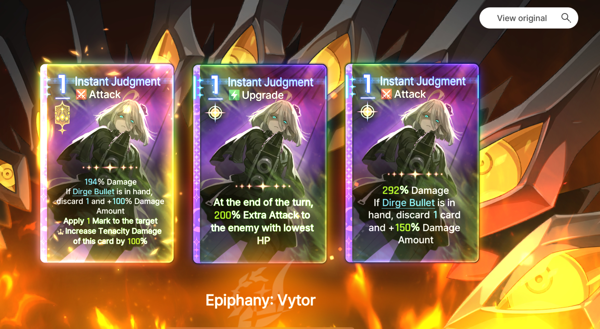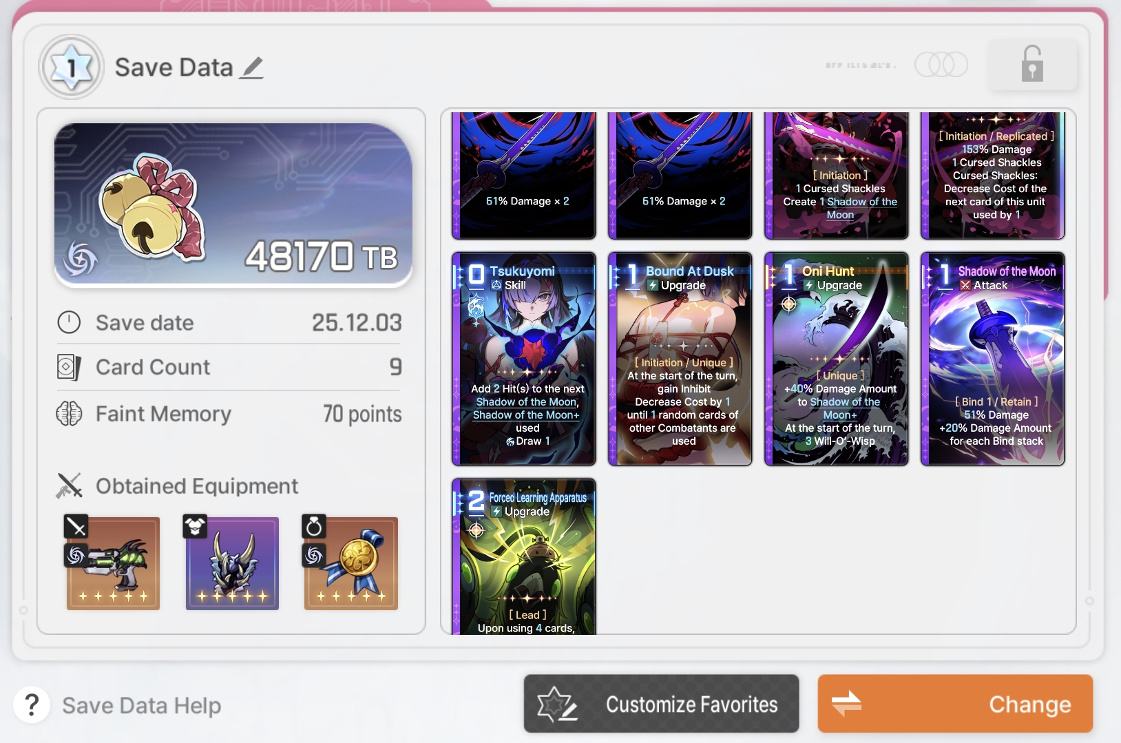 The only part of Chizuru's kit that bothers me is the Cursed Shackles debuff not automatically moving to a different enemy when the current one dies. No, the skill epiphany is not a good solution. It's common to kill an enemy with your last AP and then not be able to play it before the turn ends.Ideally, they make Shackles auto-transfer and simply replace that epiphany with another one that benefits from being used on something already-shackled.Sub-optimally, they could reduce the skill epiphany to 0-cost, but then it feels like Yet Another Necessary Epiphany.They could also just give it retain, but that would still feel like shit to play with.