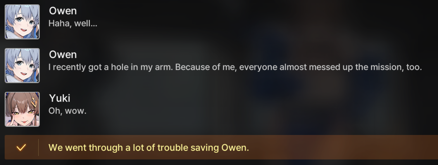 >>548876615The missing voicelines were pretty bad. ZZZ also has a habit at this point of just writing "and then X happened" instead of showing it.