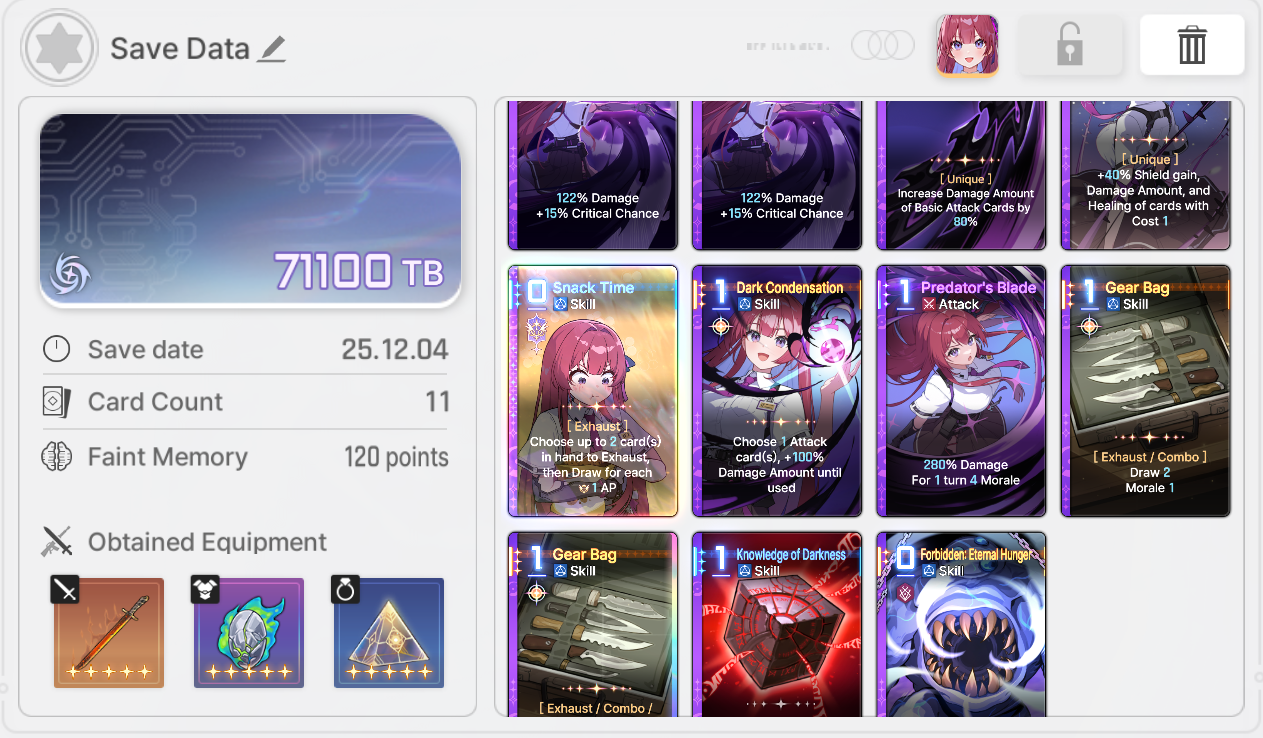 One issue with Chizuru's upgrade card is that monsters that put retain cards in your hand at the end of a turn always seem to get their card cost reduced instead of your own since I guess the card reduction takes place before you draw.