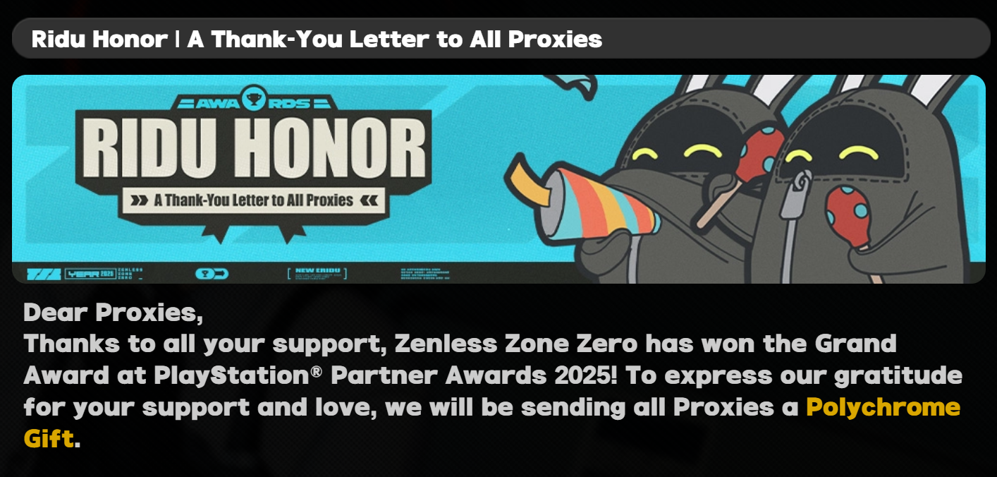 Hey /zzz/ I heard you won an award for good sales during the time Miyabi was on banner. Don't worry that other games on podium are flops confirmed by their own devs. PSStore is huge deal. This is big achievment and worth celebrating. Let's hope the game will continue to grow like it did for last few versions