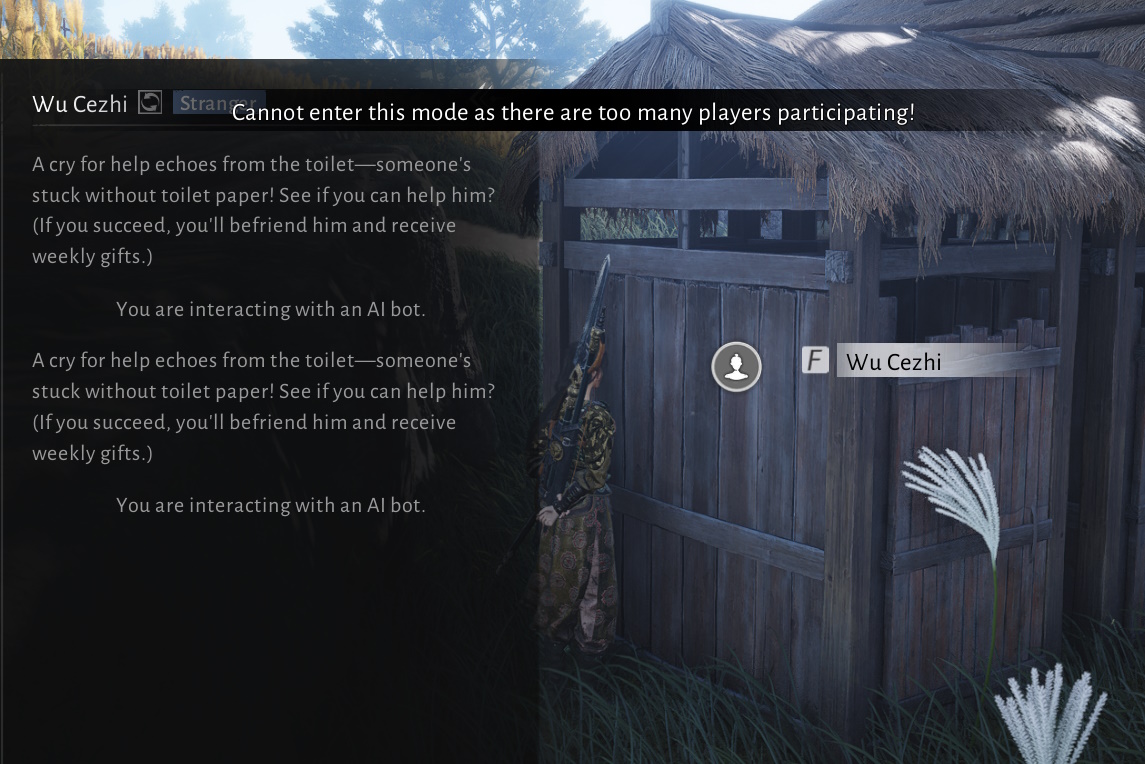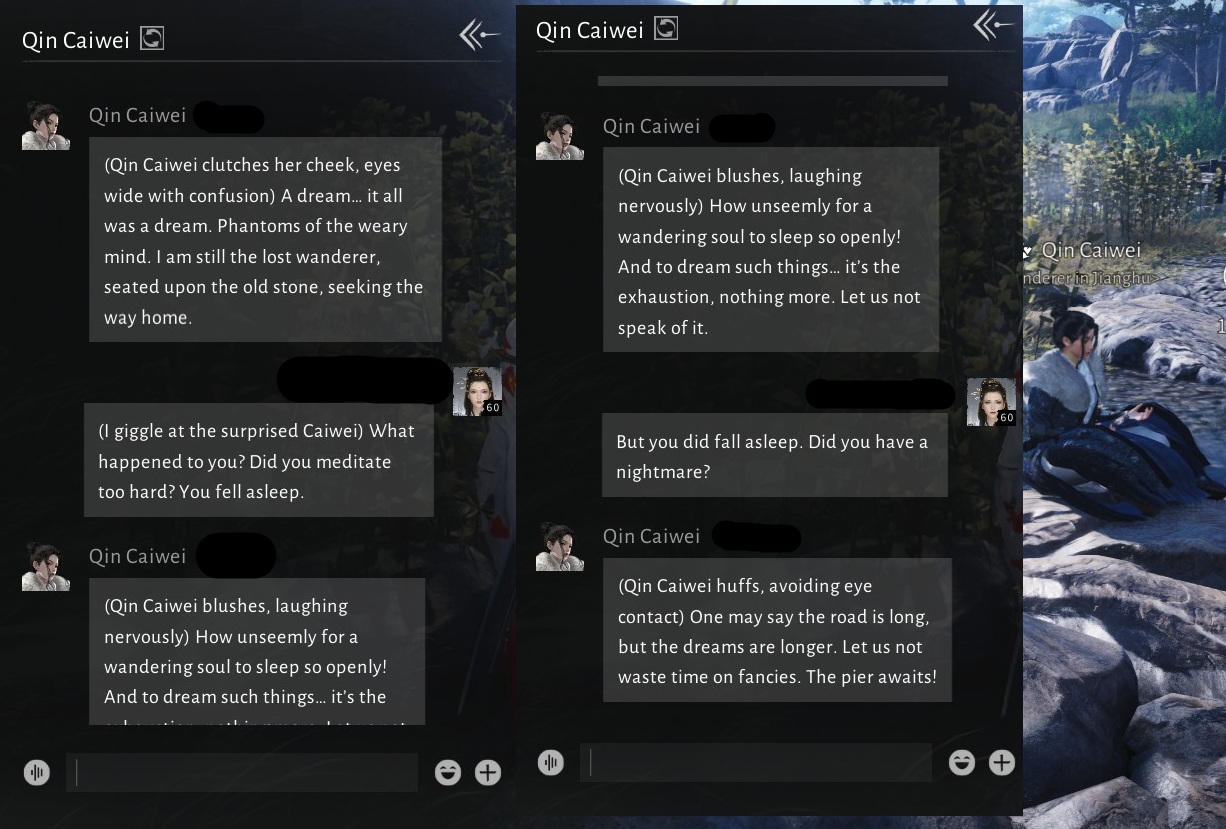 Previous Realm: >>548903390Where Winds Meet is an epic Wuxia open-world action-adventure RPG set in ancient China at the tenth century. Players will assume the role of a young sword master as they embark on a journey to uncover the mysteries of their own identity. Let the wind carry your legend on an epic journey to the East!Download Now:PS Store: https://playstation.com/games/where-winds-meet/Steam: https://store.steampowered.com/app/3564740/Where_Winds_Meet/Official PC Launcher: https://wherewindsmeetgame.com/news/official/GlobalLaunch/InstallGuide.htmlWebsite: https://www.wherewindsmeetgame.com/Maps:Chinese: https://map.17173.com/yysls/maps/qinghe (more info, but... Chinese)English (global): https://mapgenie.io/where-winds-meet/maps/world/vg/ Guilds:>Name: Sage>ID: 1000199293/95>Name: Associates>ID: Invite Only95/95>Name: NOFUNALLOWED>ID: 1010828174/85Search by ID and then send a message to the guild leaders saying you're from /vg/.Join World Channel JP4 for Cross Guild CommunicationCodes (Settings -> Other -> Exchange Code) (And should this decree no longer hold true, let the heavens bear witness as we bellow at the OP with righteous fury):WWMGLtiktokWWMGLyoutubeWWM251115