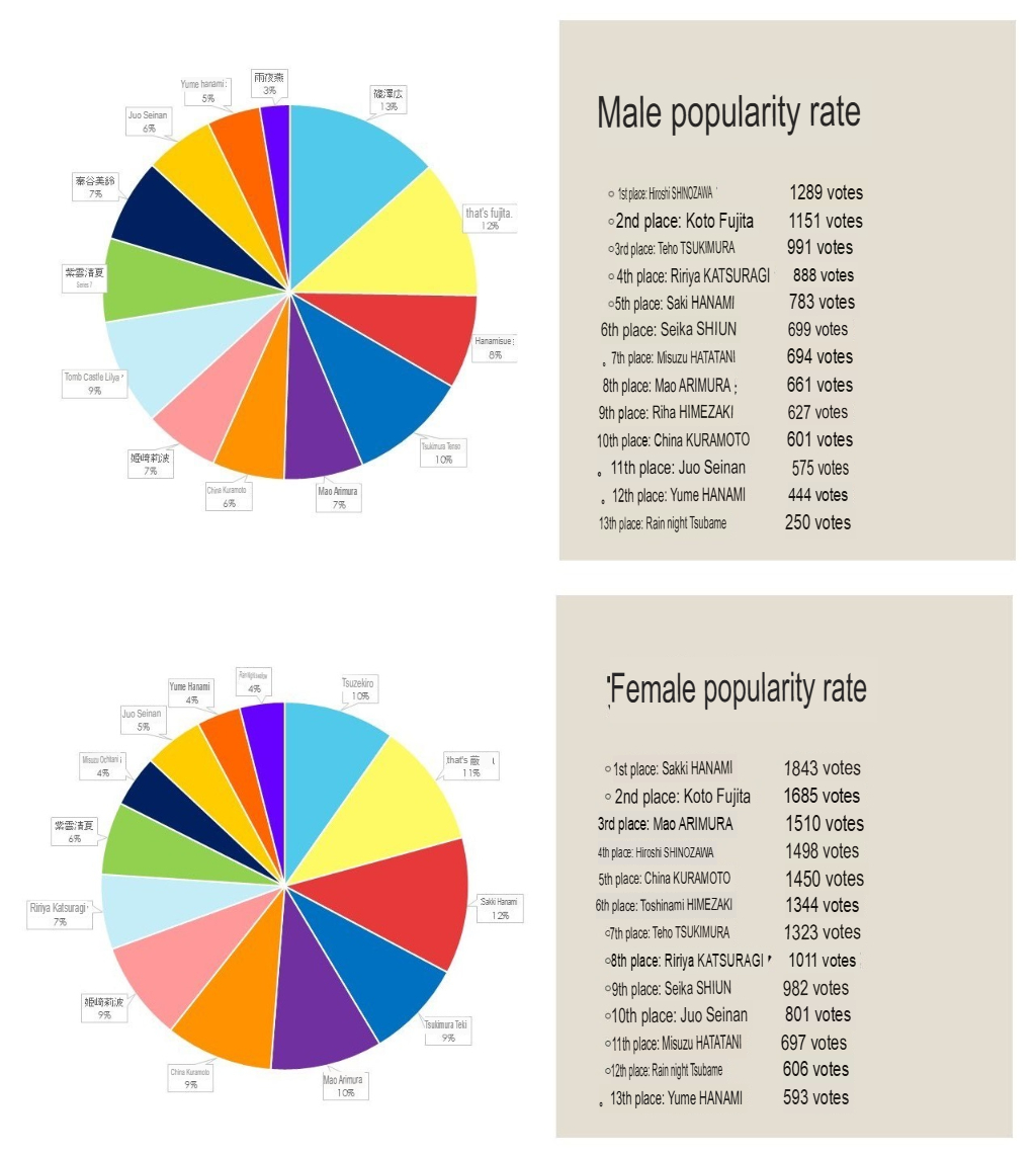 >>549025492Male is actually Hito>Kotone. My b.Honestly, they are both pretty equal considering the difference between them is just 11 votes overall.