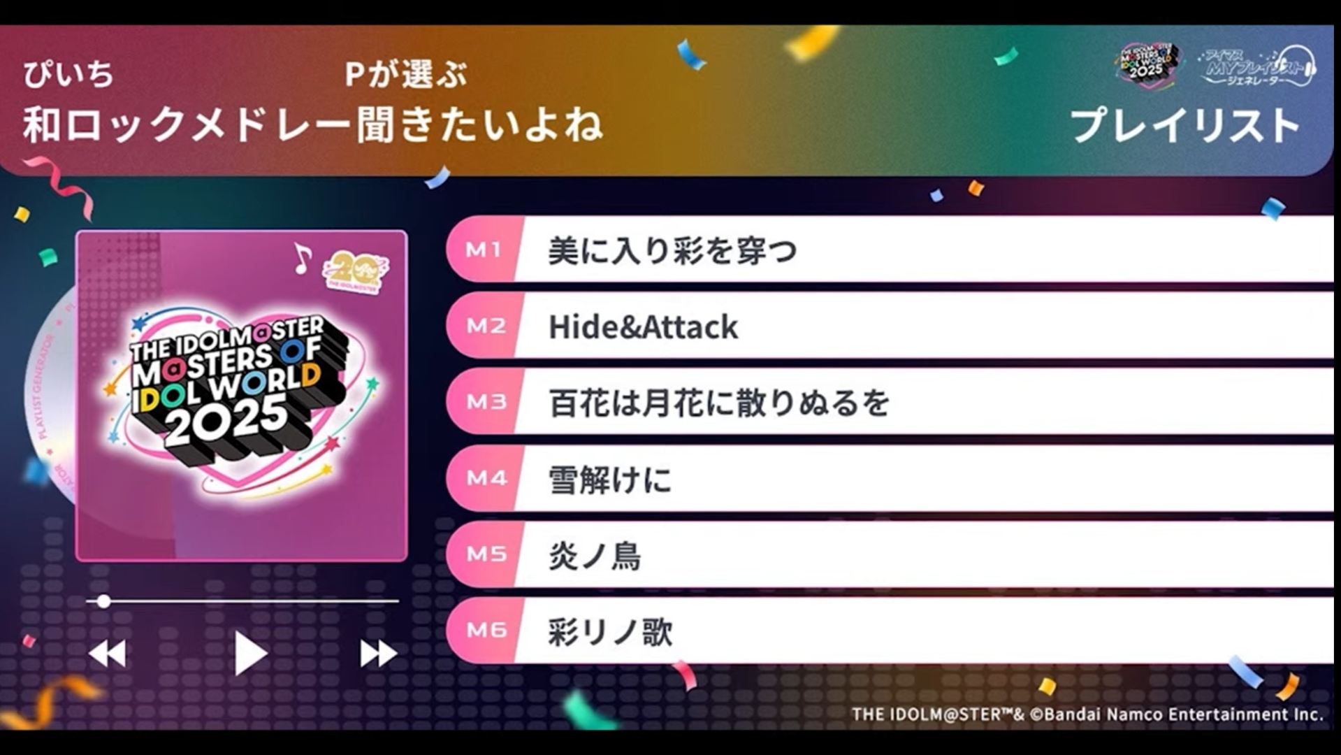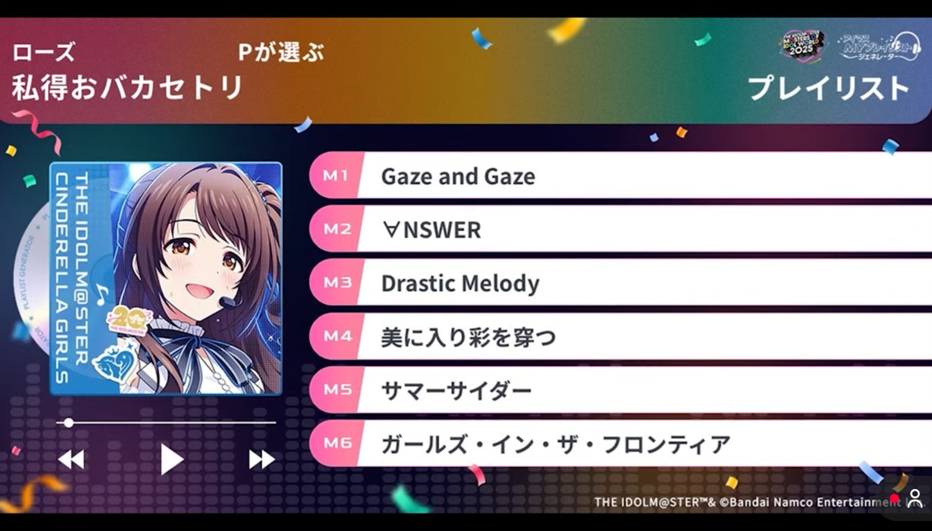iM@S NEWS ARCHIVE>Gakuen- GK Begrazia's "Star-mine" hits 2M: >>548985130- GK Upcoming Cards on Dec 8th: >>548976609- GK Rinami Bunny FREEing figure in July: >>549004986- GK Misuzu meets Palude loungewear in May (orders from Dec 5th to Jan 6th): >>548897326 >>549004917- GK x Chugai Grace Café from Jan 9th to Feb 8th: >>548911628 >>549005131>876pro- VL Cosmo dances "Fighting My Way" again: >>549007030>Other- M@STERS OF IDOL WORLD 2025 collab drinks: >>548985353- M@STERS OF IDOL WORLD 2025 rehearsals (Dec 5th): >>548989149 >>548989191 >>548989285 >>548997615- M@STERS OF IDOL WORLD 2025 setlist predictions with GentaP: >>549007951- M@STERS OF IDOL WORLD 2025 "Ai" no Kiseki Week 200 Hour Stream schedule (Dec 5th): >>548987204 >>548987264- M@STERS OF IDOL WORLD 2025 "Ai" no Kiseki Week 200 Hour Stream's new segments will all be uploaded to iM@S channel: >>548996238- "Ai" no Kiseki Week - Best iM@S Live Moments Digest 2014-2025: >>549008486 >>548999603- THE IDOLM@STER LIVE COSTUME EXPO tickets now on sale: >>548987015- /@/ Idol Survey results (Dec 5th): >>548995763>Fancomics- GK Kotone nui marriage fancomic TL: >>549009594 >>549009994