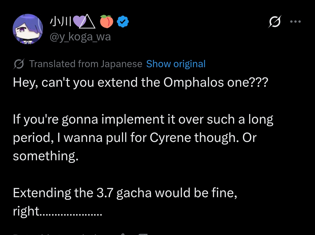 >instead of just dumping the entire CH reruns to stall for time at the end they choose brick effect and a CH who already got a rerunJust extend Cyrene's banner or put in Cerydra and Evernight ffs