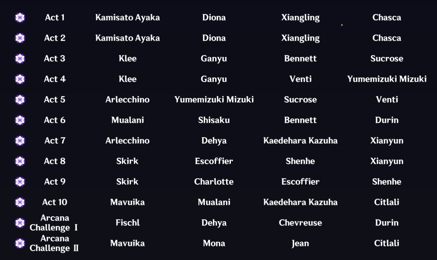 >>549082607Depends on the team but it's probably Kazuha, Furina, Citlali, or Xilonen C2. Quill cons are also good (Coffee C2, Durin C1) and Nilou/Nahida C2 are good in Lunar Bloom.