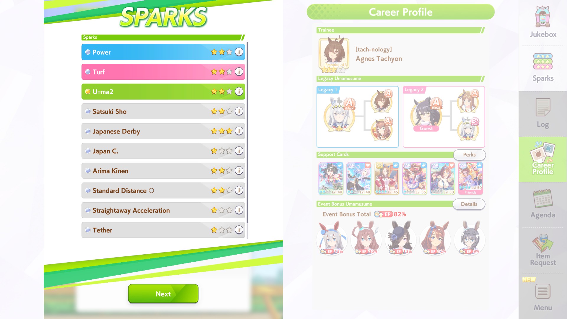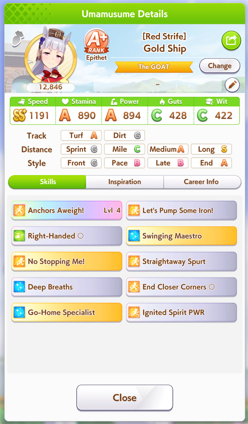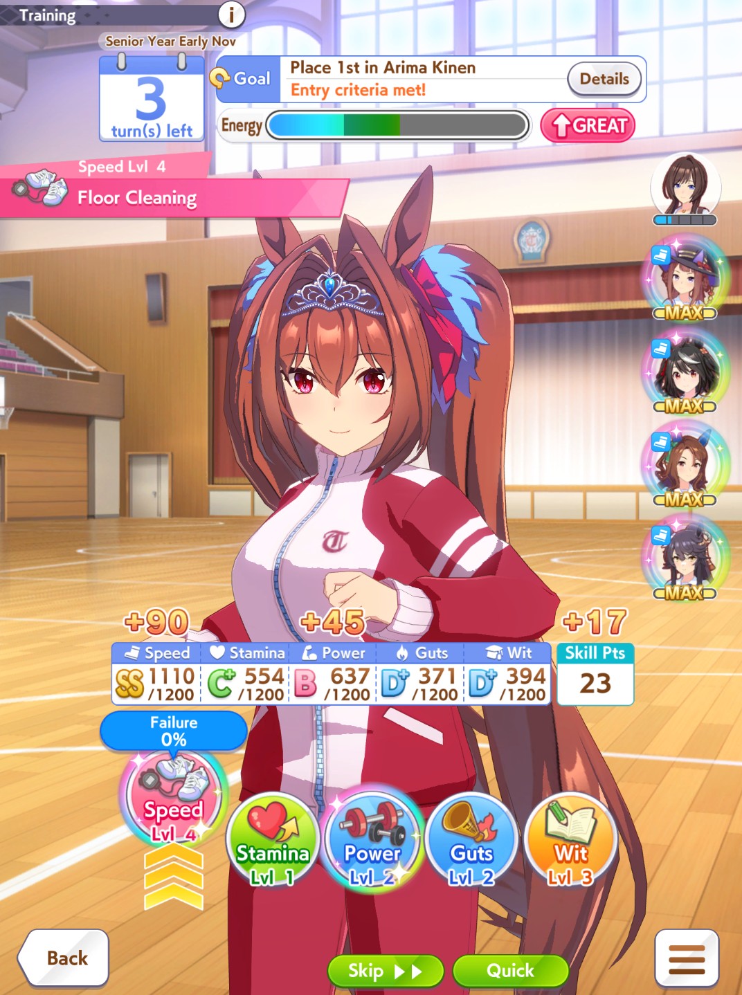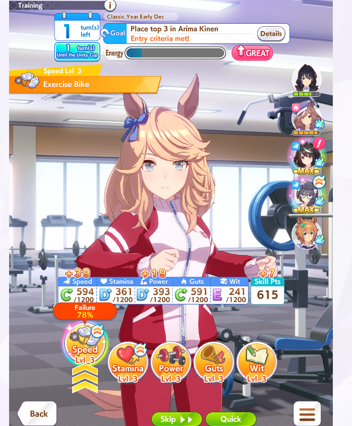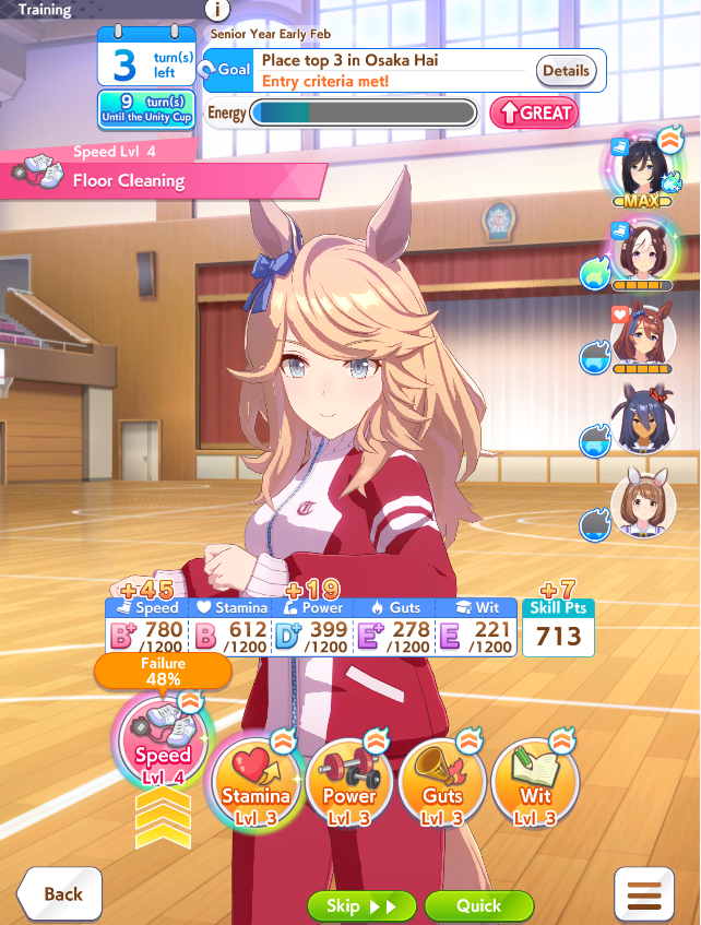 But then you can't user it when training her. That's why I conceded on Fuku speed.