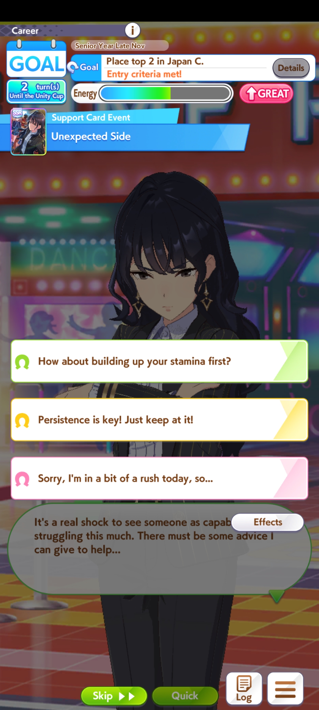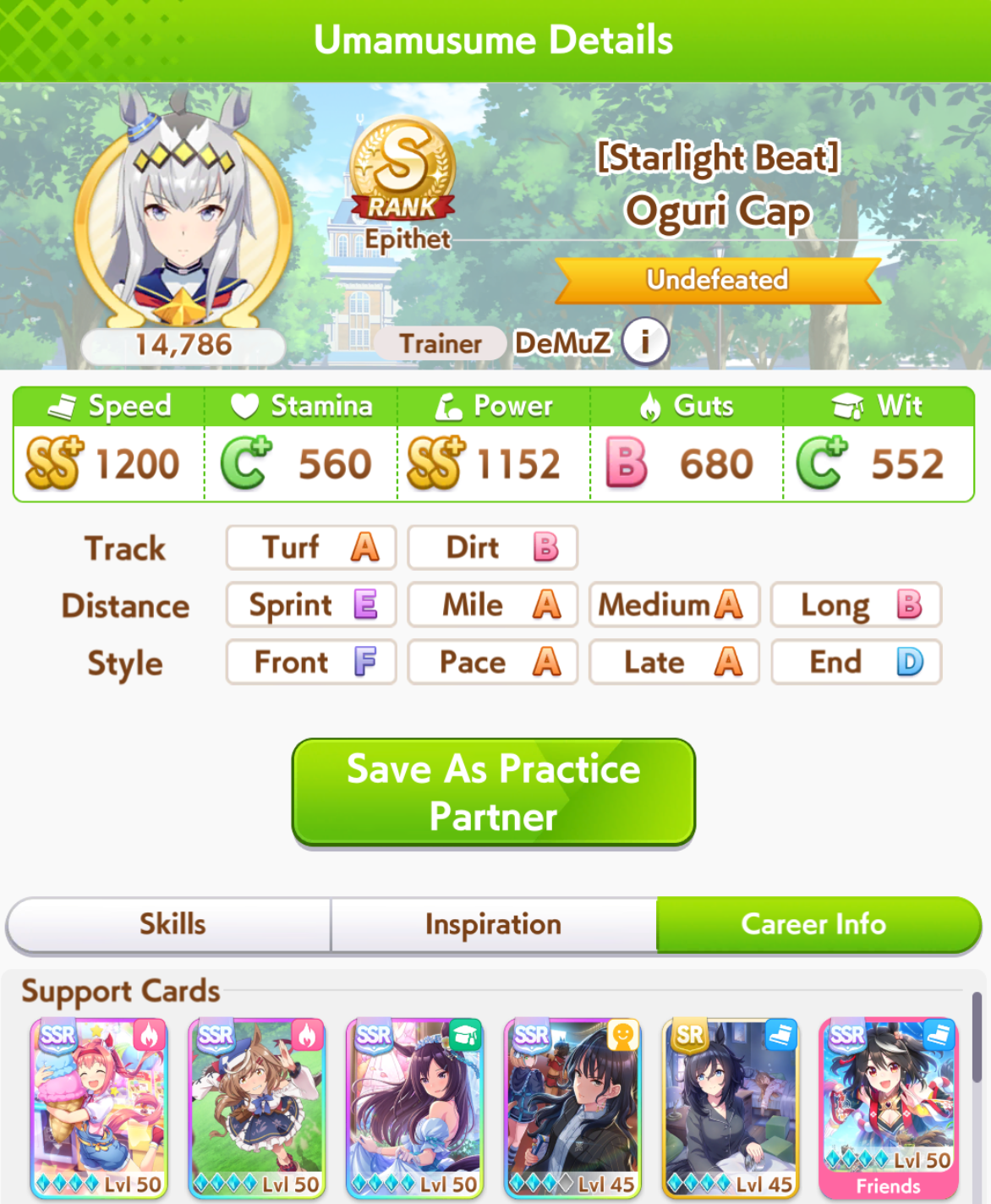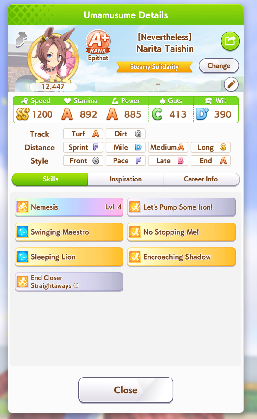 But then you can't user it when training her. That's why I conceded on Fuku speed.