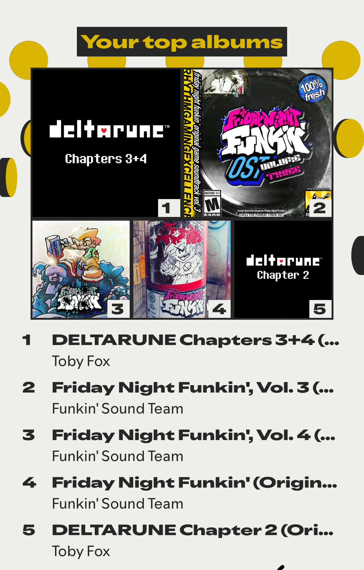 >2 dollars per song>mediocre song choices, no week 4, no mixes>animation takes away time from week 8's updatewhat's the fucking point man