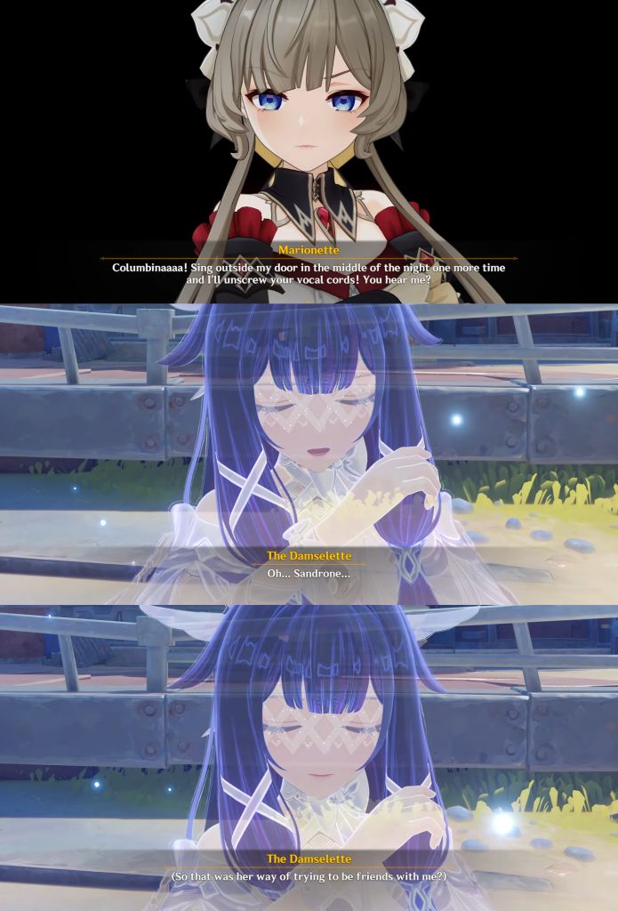 Just started and finished all the current NK quests in an evening. Varka is a lot less fun than previous mentions of him/that letter read during an event led me to believe. Also Columbina should've kept the personality from those ancient leaked Fatui sheets because now she doesn't have one at all.