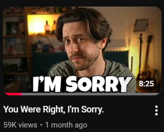 >>549230628because he only asked for forgiveness after noticing his subscribers were dropping like flies, he didn't do it because he actually believes the shit his saying, he didn't even bother privating the ragebait slop on his channell, that's what grifting is and scum like him should never be forgiven.