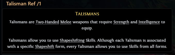 What do you think the base types for talismans will be like for implicits or stats? Like will some talismans be more suited for wolf or bear or dragon? Or will they be pretty generic? I imagine that every talisman won't let you transform into each beast form. So there might be a talisman that only allows bear form but has some bear form implicits or something. Thoughts?