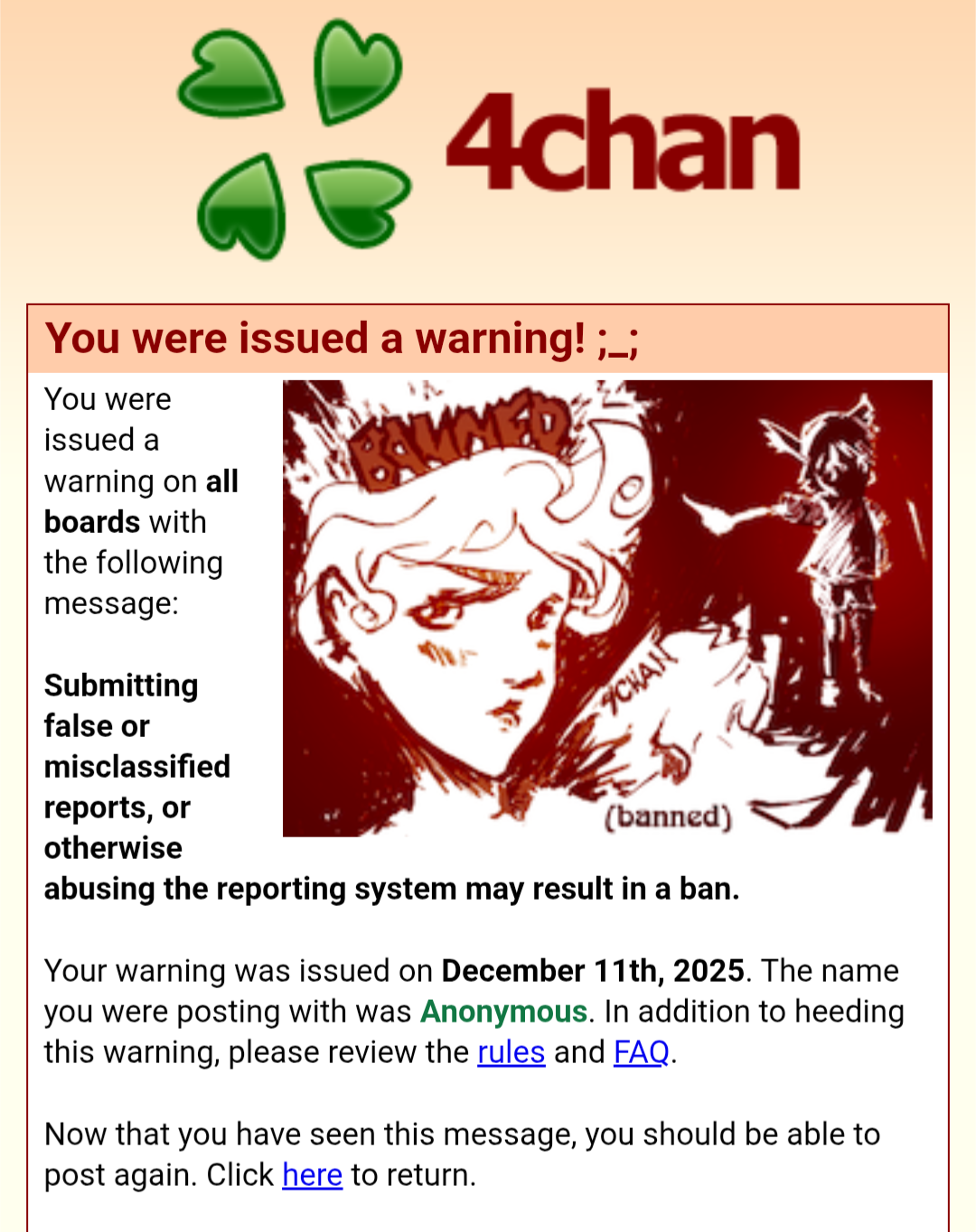 dear janny, I sincerely meant for the poster to kill themselves. it was not an attempt at trolling. it was not ban worthy. so I have re-posted it.