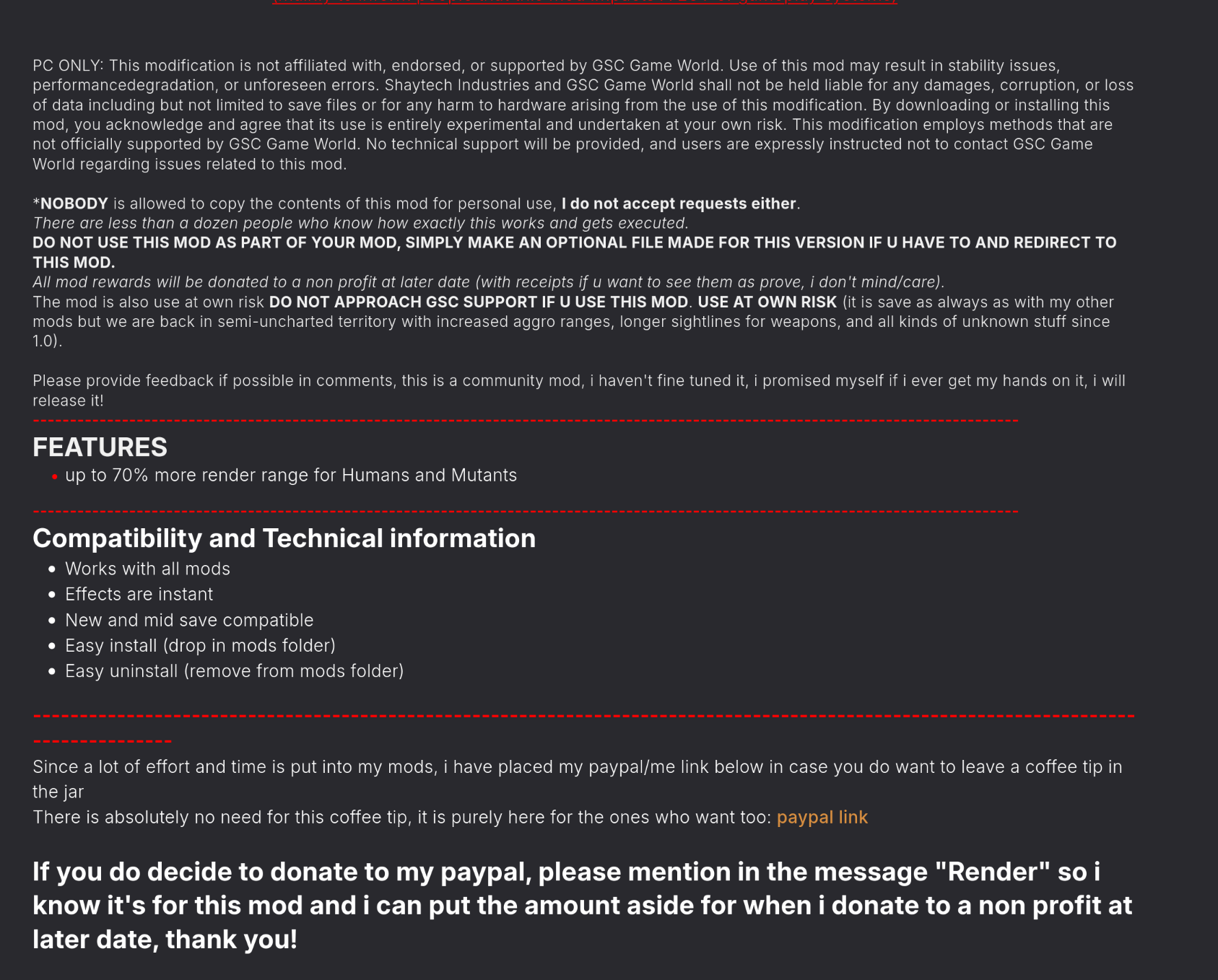 "Death by a thousand schizos" edition.S.T.A.L.K.E.R. Trilogy guides, tips, information and much more:rentry.co/STALKERTrilogyGuidesS.T.A.L.K.E.R. Trilogy mods, anon's merges and resources:rentry.co/STALKERTrilogyModsCommon misconceptions about Shadow of Chernobyl game mechanics:www.metacognix.com/stlkrsoc/WhatYouKnowThatAintSo.htmlRunning S.T.A.L.K.E.R. on Linux:docs.google.com/document/d/11HcSFSyb0DX3ymModXZ9tNdpTuktTioC>BugTrap, crash to desktop, freeze/lockup? Find your crash log, stalker.Check your Documents or game install directories for the xray_[your name].log file. If you can't find it, look in the location specified at the top of fsgame.ltx.Copy the last few lines from the log and paste them here if you want any help.S.T.A.L.K.E.R Trilogy new & popular mods:>IWP Standalonewww.moddb.com/mods/stalker-improved-weapon-packRecommended addons: CotZ, Absolute Nature, Structures Redux>SoC Update 1.4vk.com/topic-147828435_49497922>SOCGAwww.nexusmods.com/stalkershadowofchernobyl/mods/1089S.T.A.L.K.E.R. 2 mods and tools:>nexuswww.nexusmods.com/games/stalker2heartofchornobyl>Mod recommendations + config (less stutter, more fps, NO compiling + full Mouse fix)pastebin.com/Ma6W4BcMLost to the Zone >>549157827