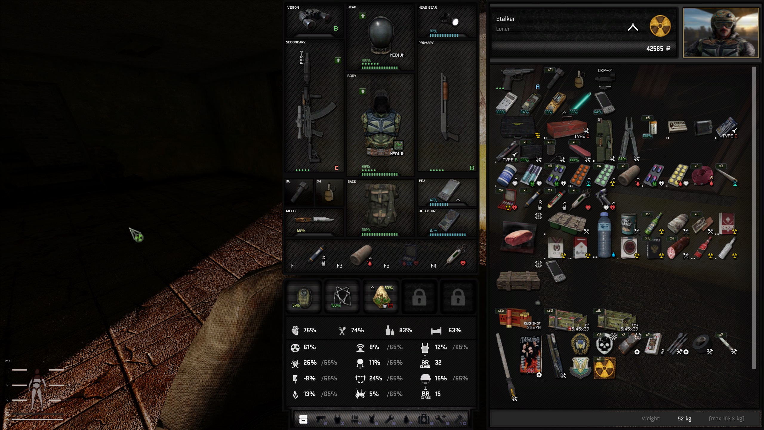 >>550018202Go to the clear sky base in great swamps and do the three missions for Cold, their leader and you'll get the gunsmithing kit, which allows you to disassemble all ammo you don't won't and make ammo you do want. Just pay attention when your fucking about with it because if you're retarded like me it's very easy to make the wrong ammo. Just managed to make 100+ rounds of 5.56 ap when I was supposed to make 5.45 ap which is fucking great it really is.Also, carry plenty of Swiss army knives and grooming kits to dismantle armours. I even pick up low number synth, Dura and mil fabrics because they're used in crafting equipment a lot and it doesn't matter how shitty quality they are you can still use them, which I wish I'd have known earlier, because techs charge a fortune for them.Also look for electronics that can be dismantled for transistors and similar items because they're very important to craft detectors, nvgs and improved PDAs but if you press left-ALT when searching bodies your game should just loot all that stuff and dismantle for you automatically. Just make sure you wait for the dismantle to finish, then pick up the components it gets, because I didn't know it's not instant and probably left tons of important components lying around on dead bodies thinking I'd picked them up.