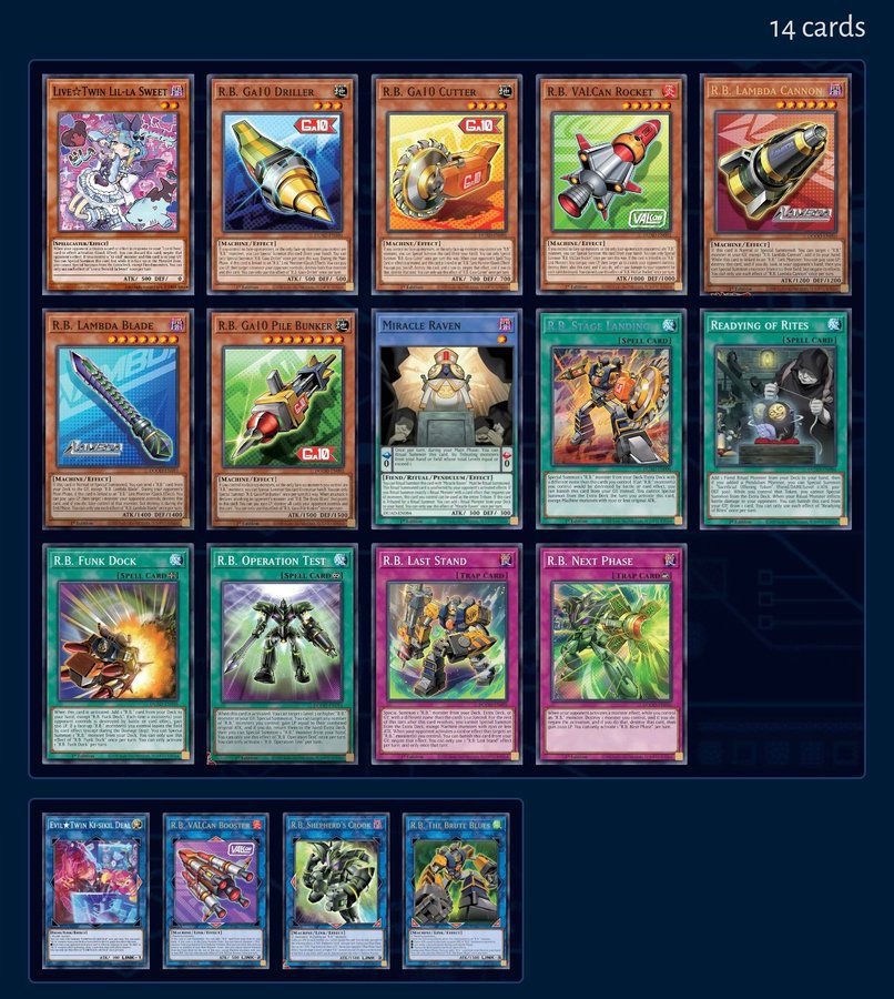 >>549604173>Yummy in Jan>K9 or VS in Feb or March>>549613286Burn is the cheapest deck you can build usually 210 UR's and 17 SR's, the problem is burns decks don't teach you how the game works and you have to know when to use dessert and ROD