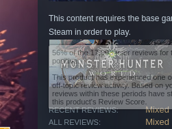 >>549615178>pictured: Iceborne content onlyThere's a reason Iceborne has a 56% positive rating vs World's 88%