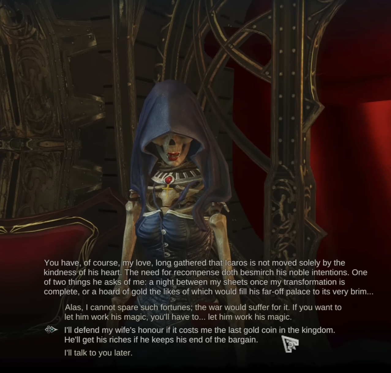 >>549600337>the red princess keeps lusting over her soulmate and asks the player if they want to be her side pieceyeah not happening