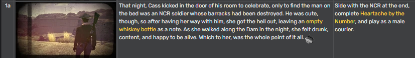 >>549978736Well I had just learned that apparently there are 2 whole nations waging war in the wasteland and I just was in a relatively nice town in goodsprings and that I’m going to the strip that has casinos and civilization. I figured why wouldn’t there be a lottery? You never know and sure parts of the place seems a bit lawless but I can leverage that when it suits me like right now. Turns out I’m just a bad person desu